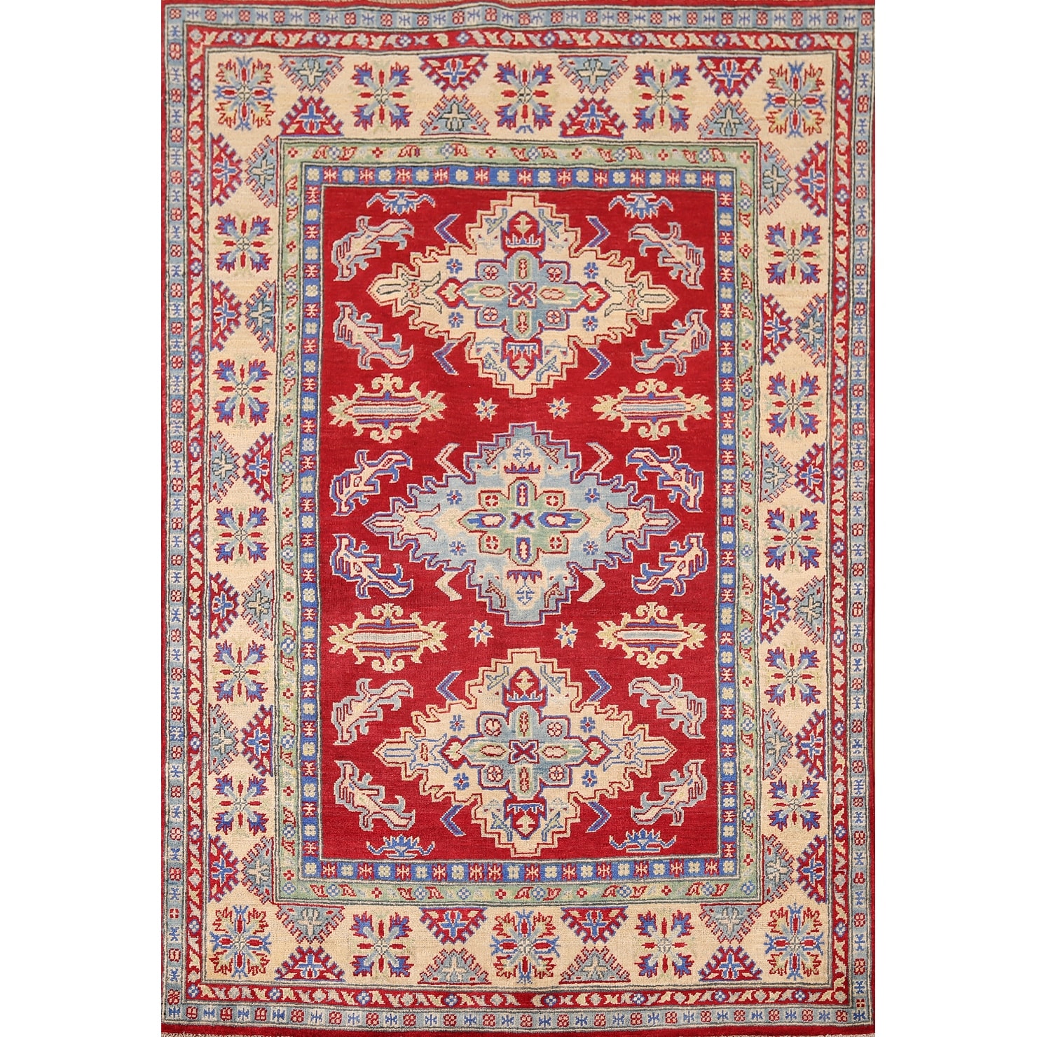 Geometric Red Kazak Rug Handmade Oriental Wool Carpet - 5'1" x 6'9"