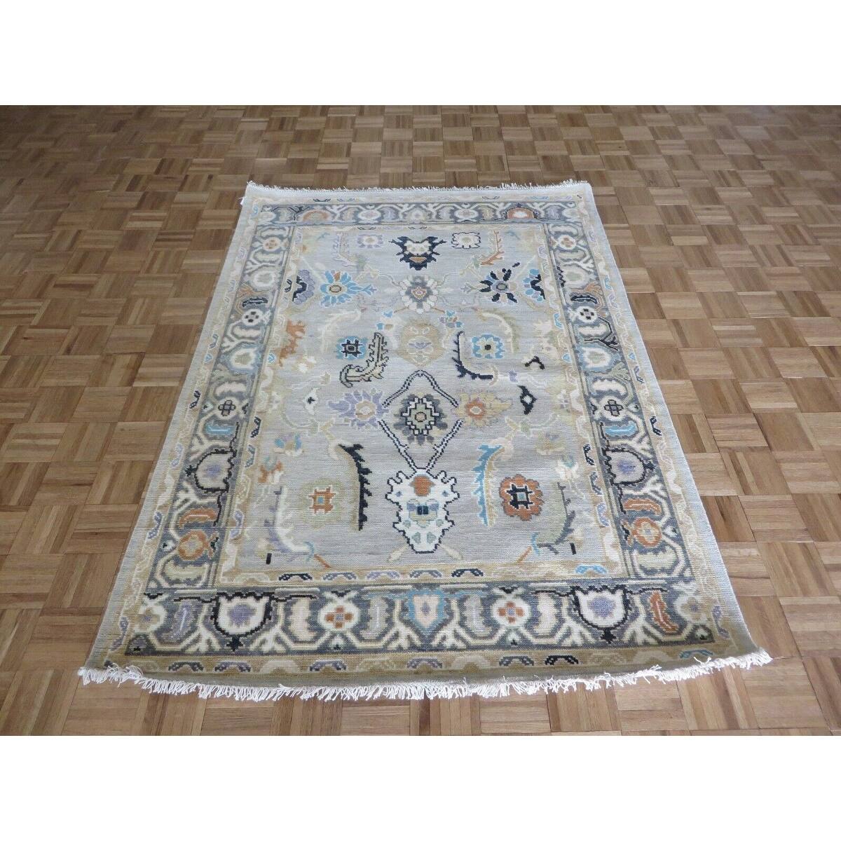 Hand Knotted Gray Oushak with Wool Oriental Rug (5'1" x 7'1") - 5'1" x 7'1"