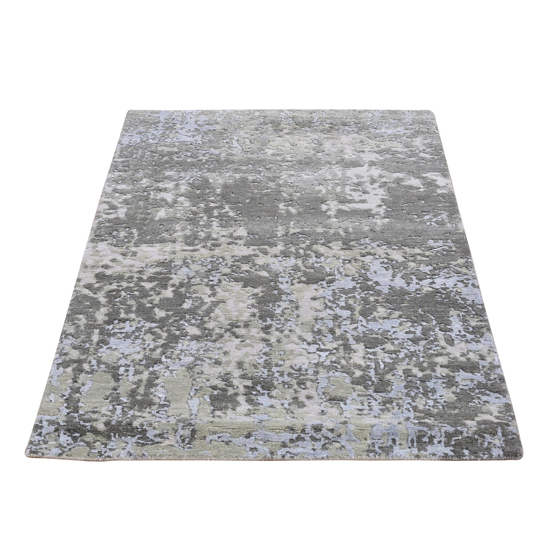 Hand Knotted Grey Modern and Contemporary with Wool & Silk Oriental Rug (3'1" x 5'1") - 3'1" x 5'1"