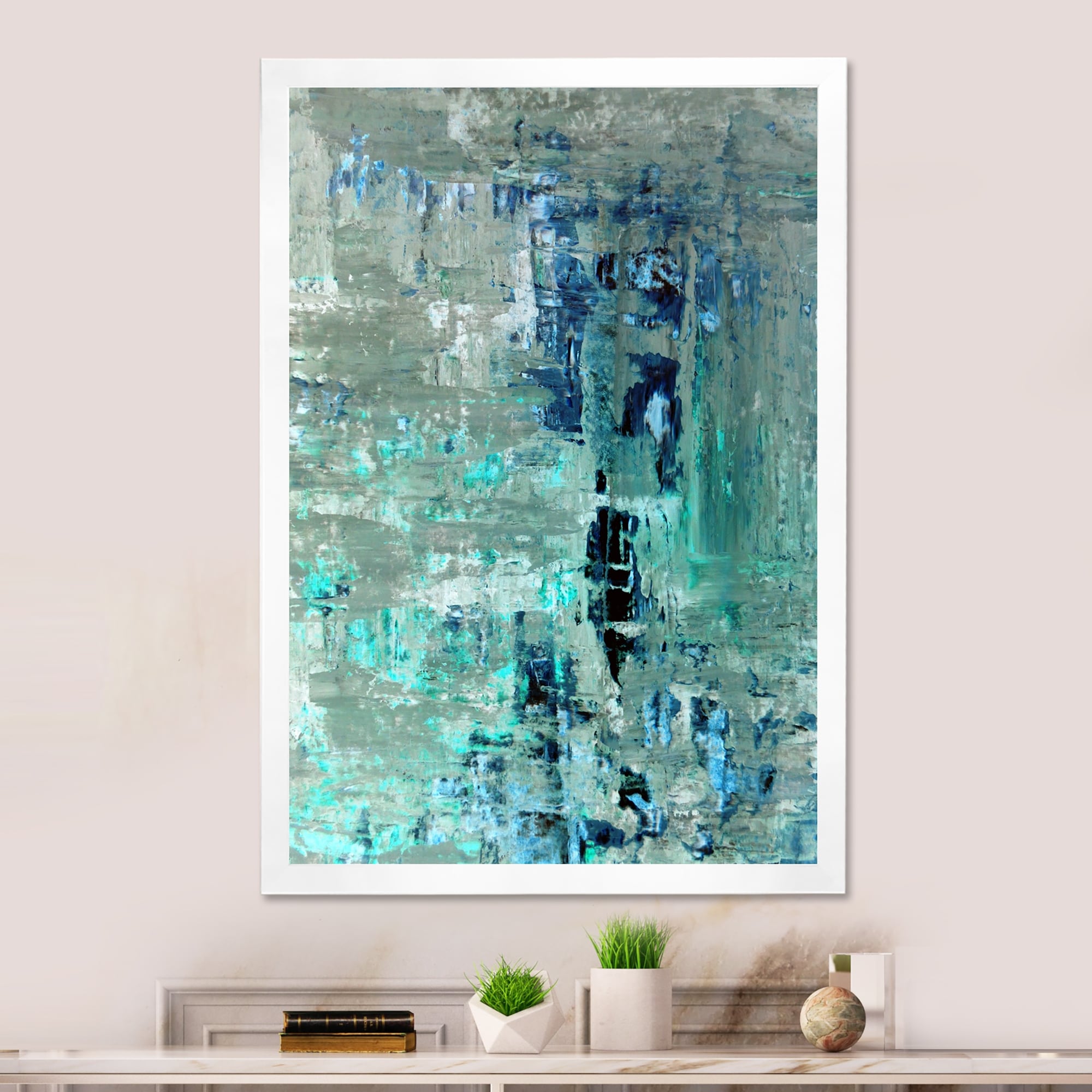 Designart "Blue Meets Turquoise Abstract Art" Modern Framed artwork