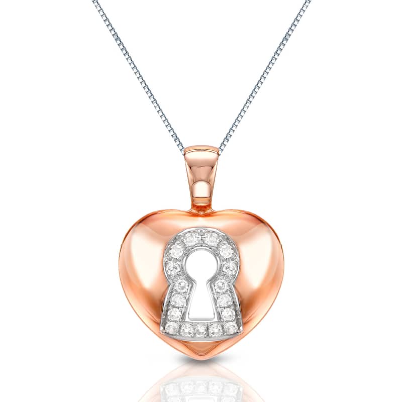 Auriya Rose Gold Diamond Accent Heart Lock Pendant 14K (H-I, I1-I2)