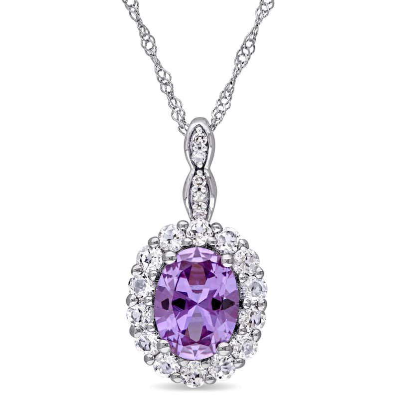 Miadora 14k White Gold Created Alexandrite and White Topaz Diamond Accent Oval Shaped Halo Necklace (G-H, I1-I2) - Purple
