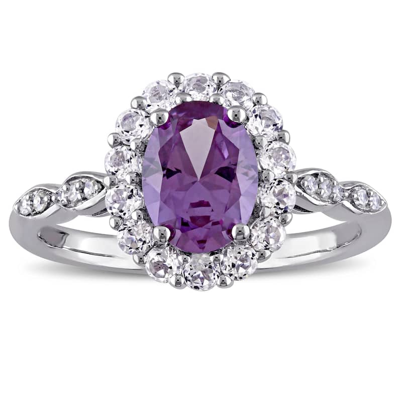 Miadora 14k White Gold Created Alexandrite White Topaz and Diamond Accent Vintage Halo Ring - Purple
