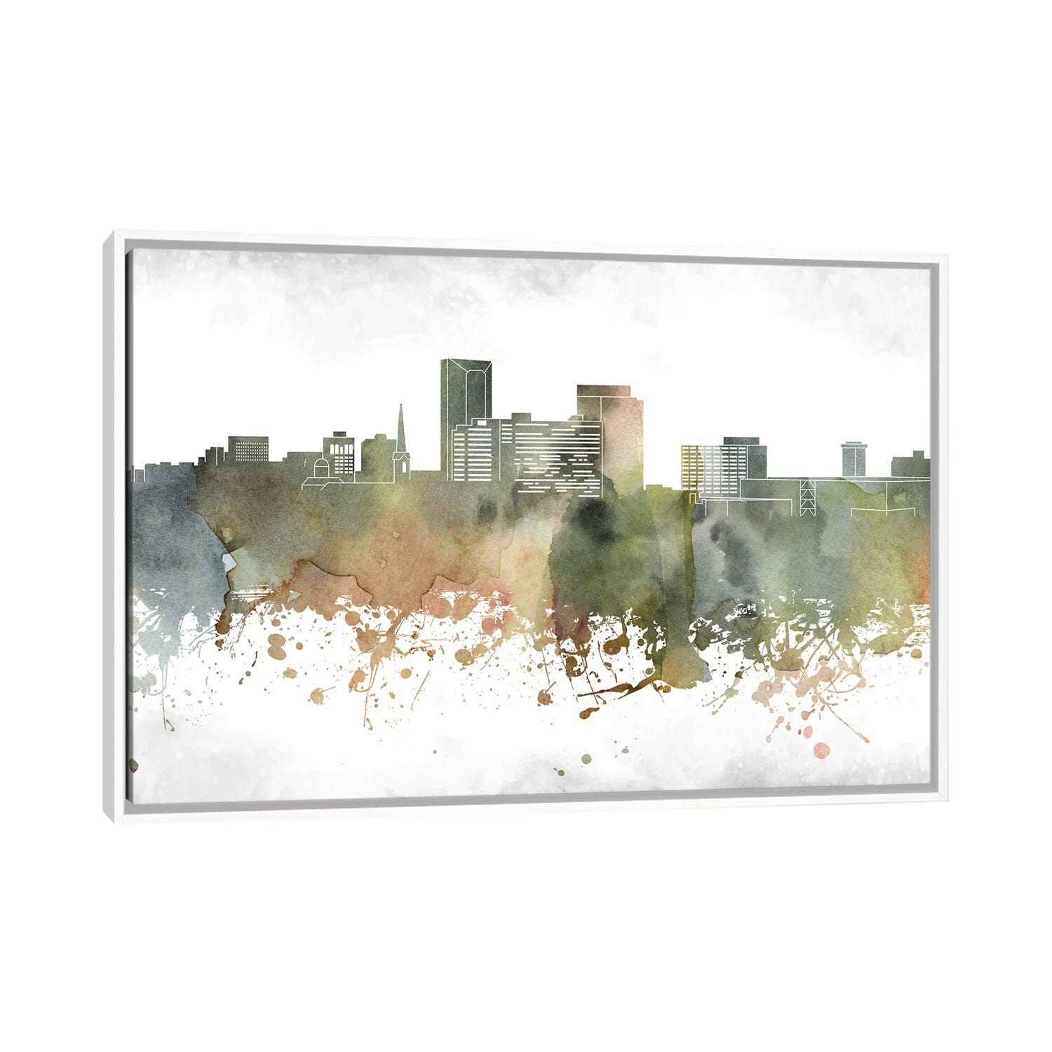 iCanvas "Cincinnati Colorful Watercolor Skyline" by WallDecorAddict Framed Canvas Print