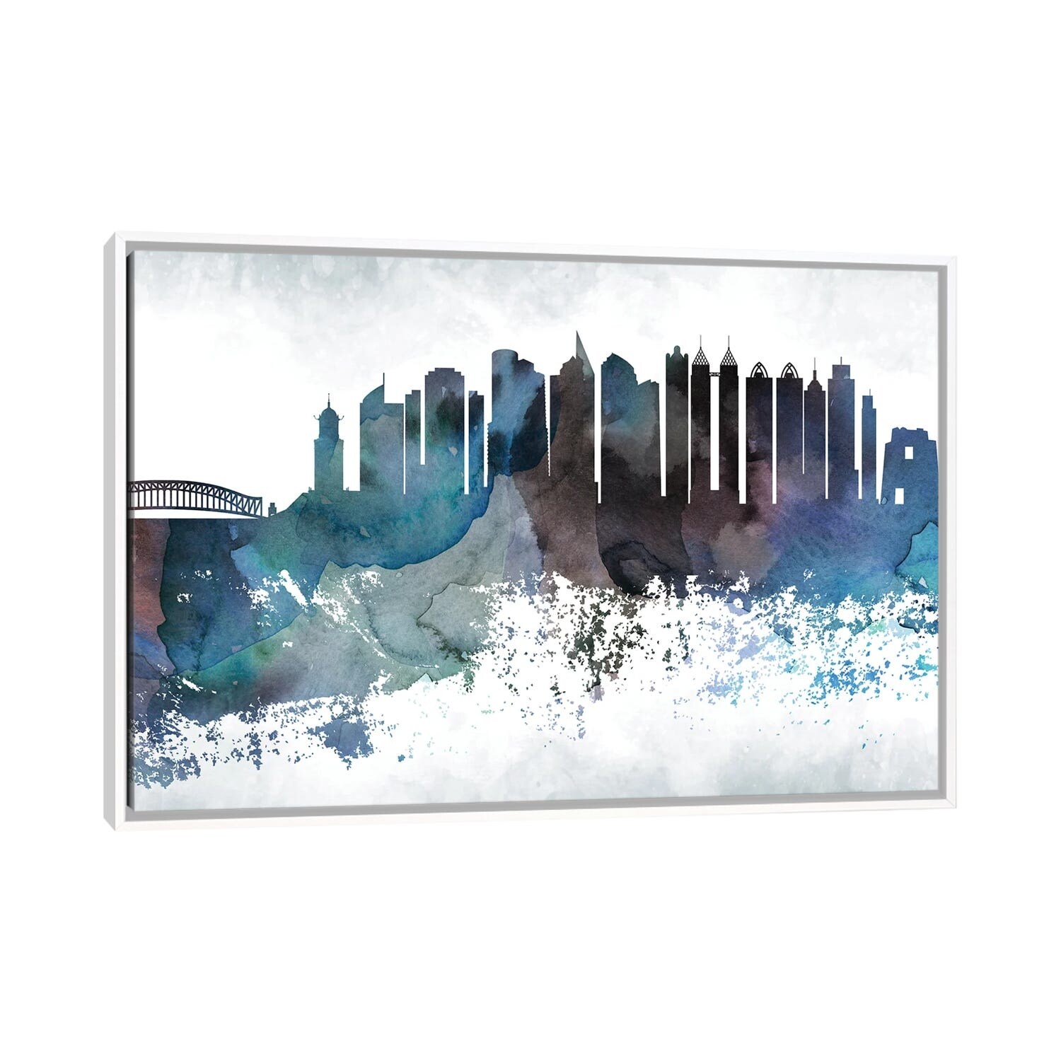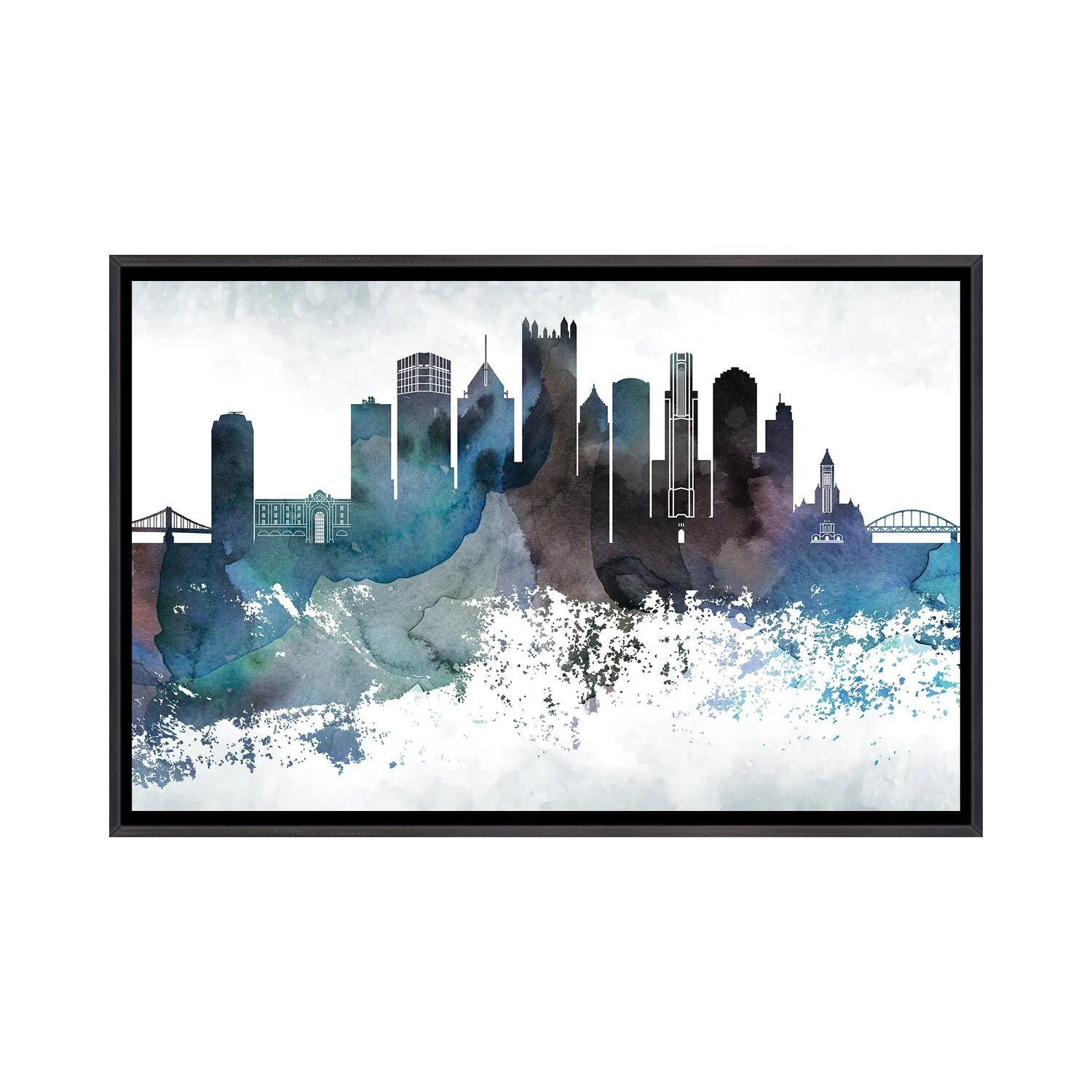 iCanvas "Pittsburgh Colorful Watercolor Skyline" by WallDecorAddict Framed