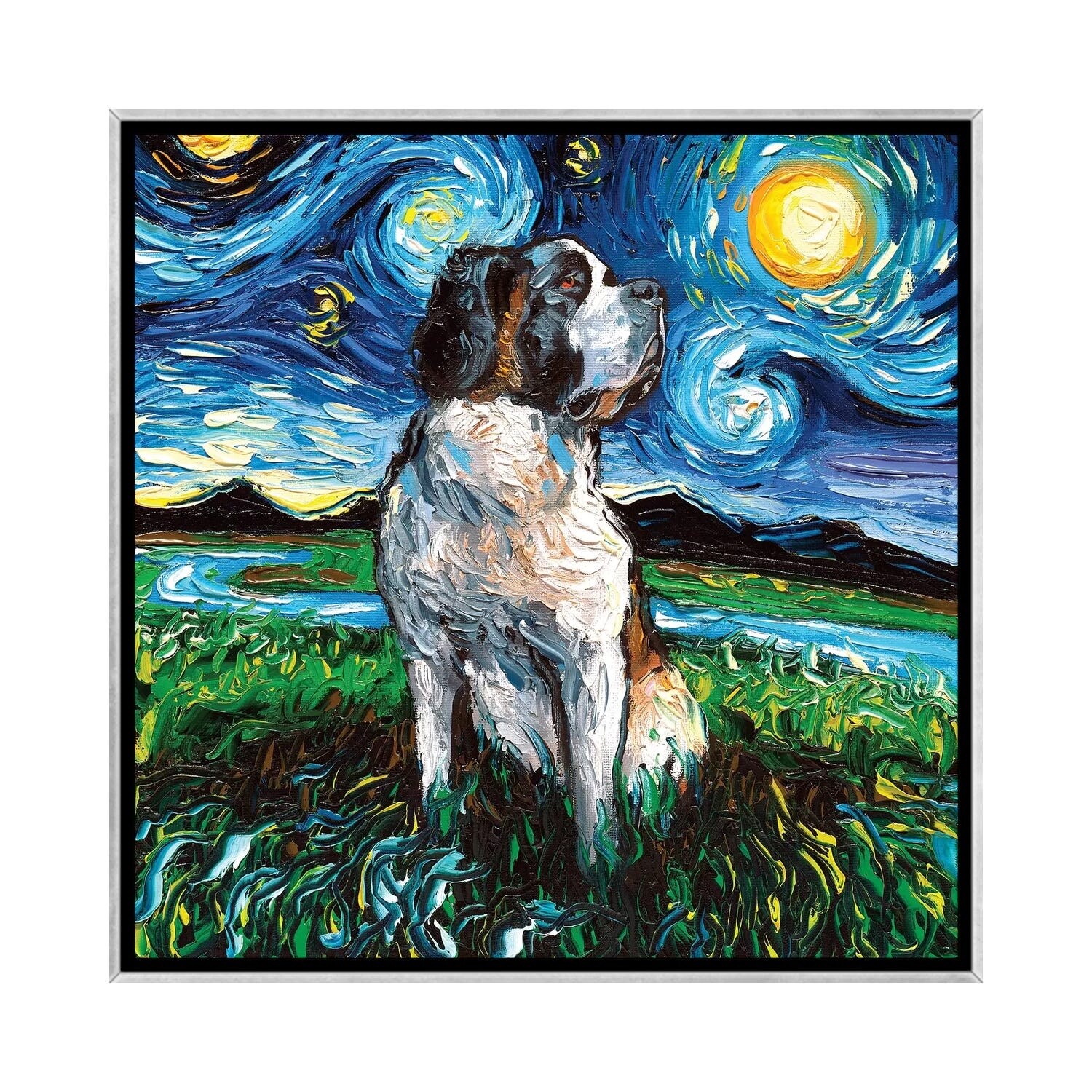 iCanvas "Saint Bernard Night" by Aja Trier Framed