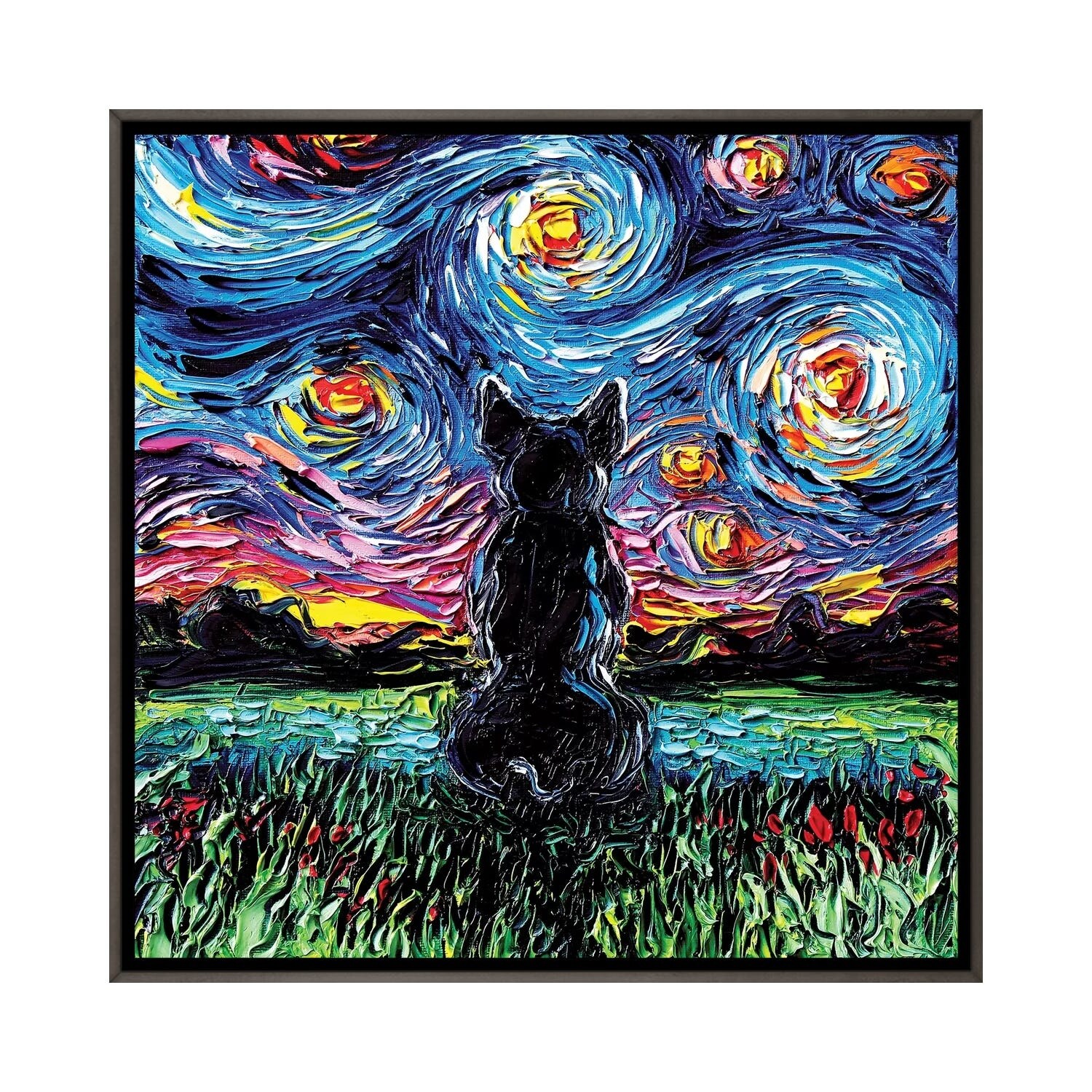 iCanvas "Schnauzer Night" by Aja Trier Framed Canvas Print