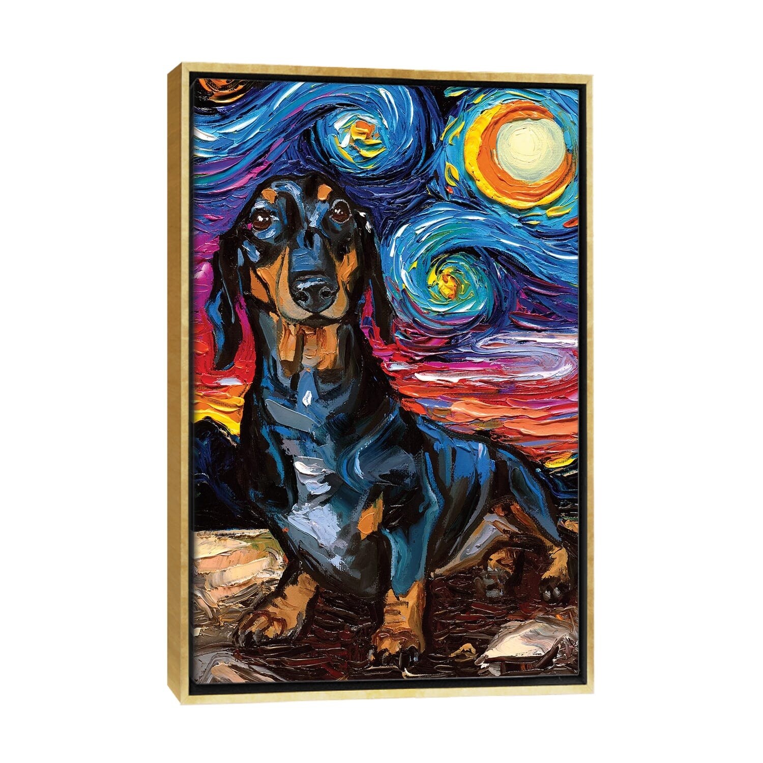 iCanvas "Black And Tan Dachshund Night II" by Aja Trier Framed Canvas Print