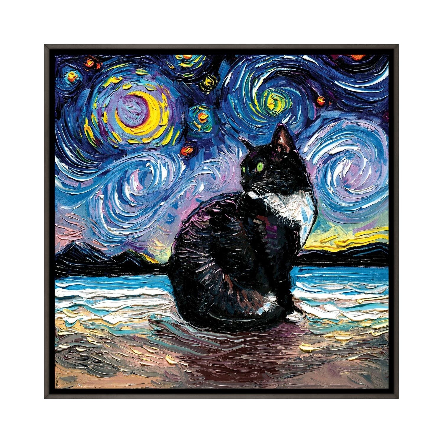 iCanvas "Green Eyed Tuxedo Cat Night" by Aja Trier Framed