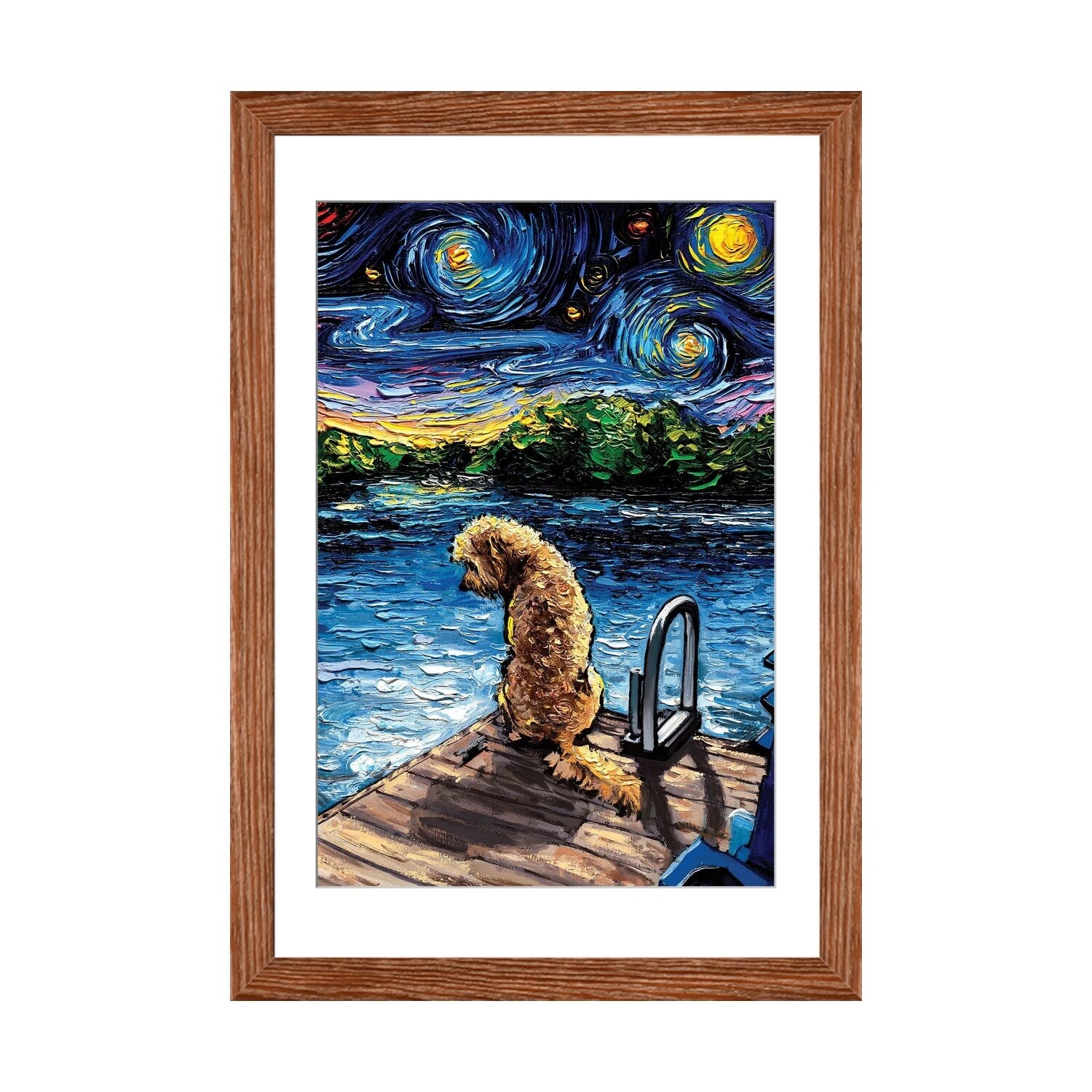 Goldendoodle Night Print on Wood by Aja Trier - Multi-Color