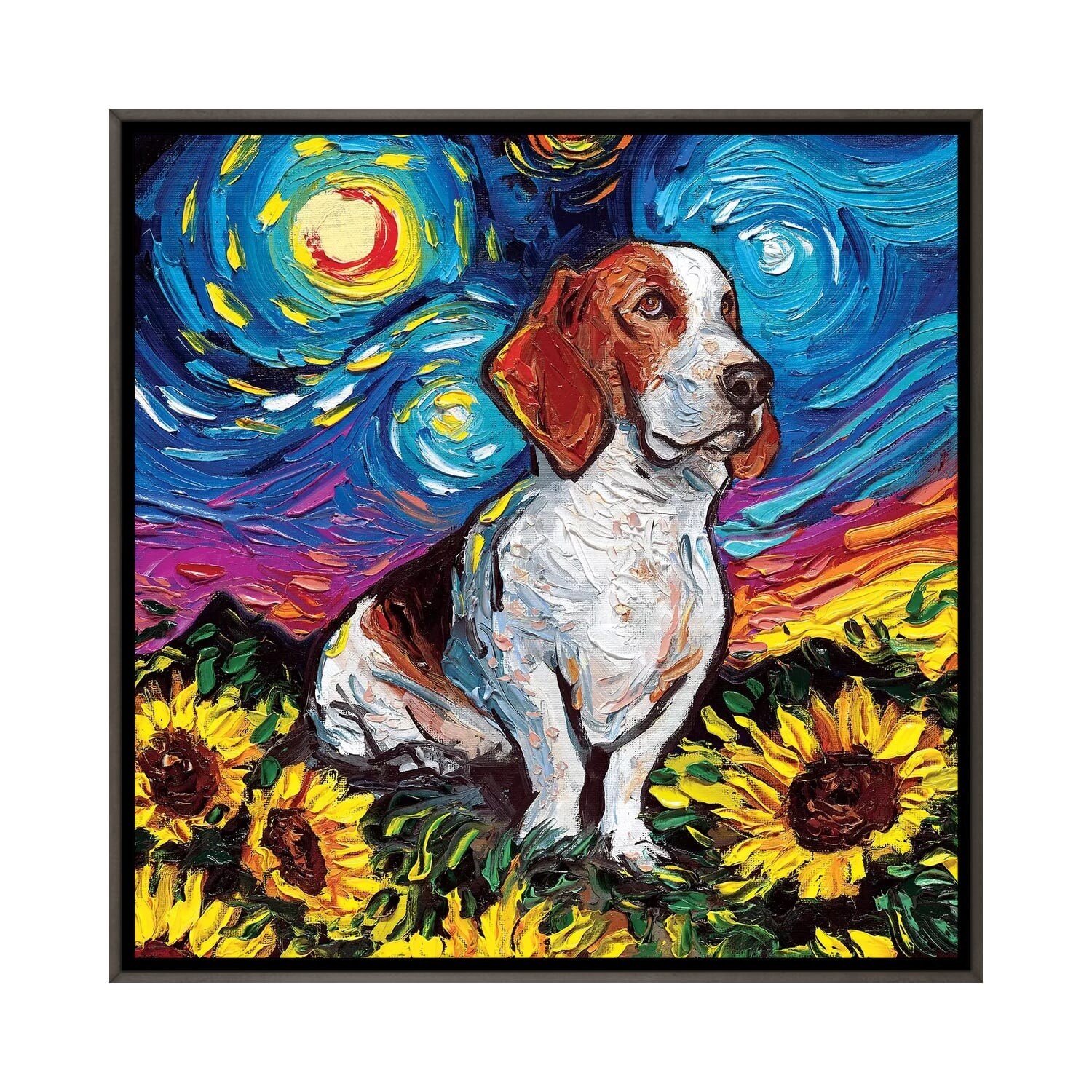 iCanvas "Basset Hound Night II" by Aja Trier Framed