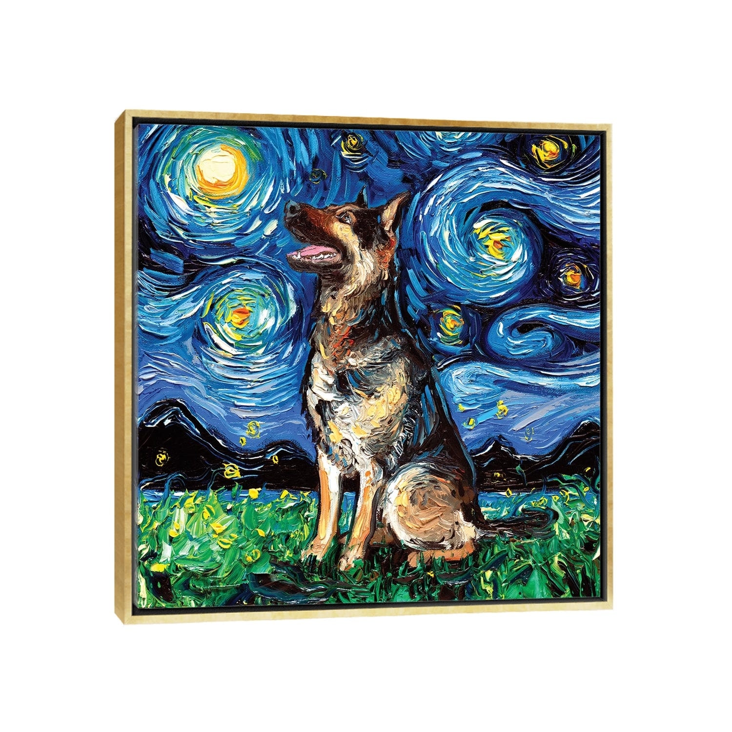 iCanvas "German Shepherd Night II" by Aja Trier Framed Canvas Print