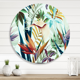 Designart 'Tropical VIntage Flowers I' Tropical Metal Circle Wall Art