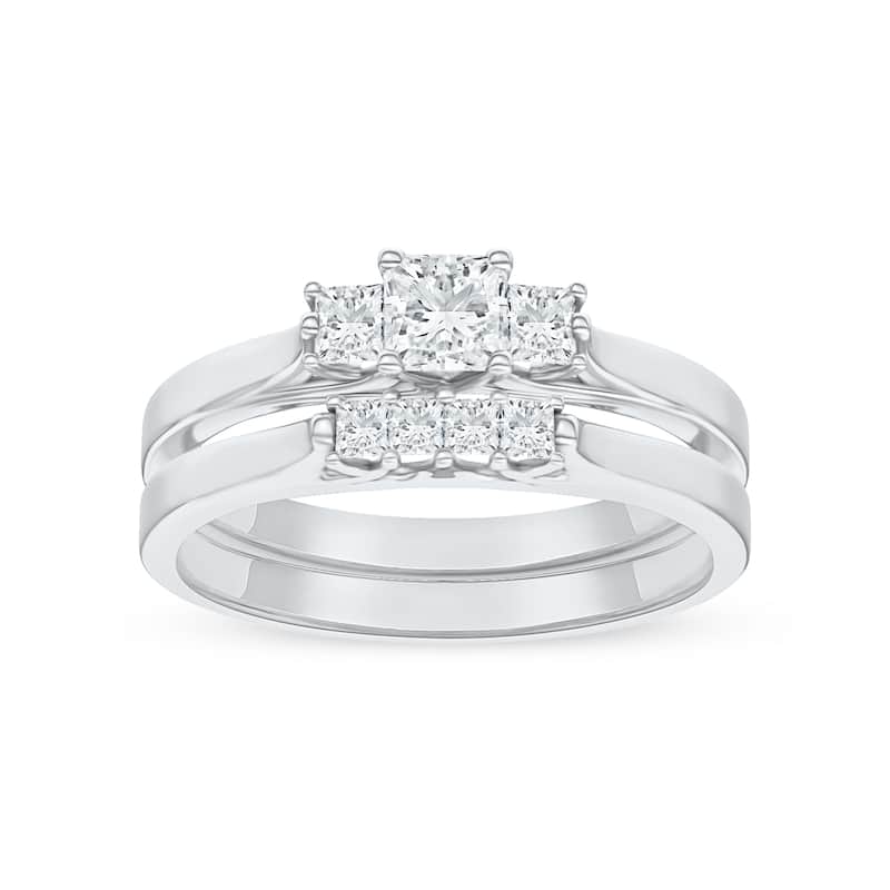De Couer 14k White Gold 1/2ct TDW Diamond Three-Stone Engagement Ring Set with One Band