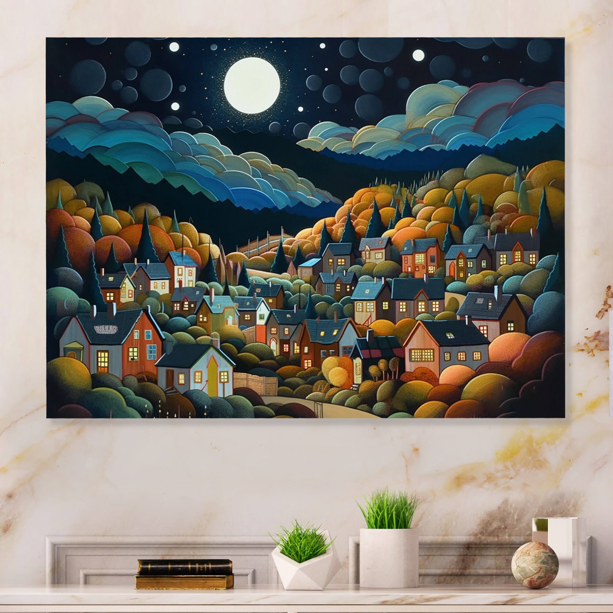 Designart "Small Alpine Village in Fall IV" Landscape Mountains Metal Wall Art
