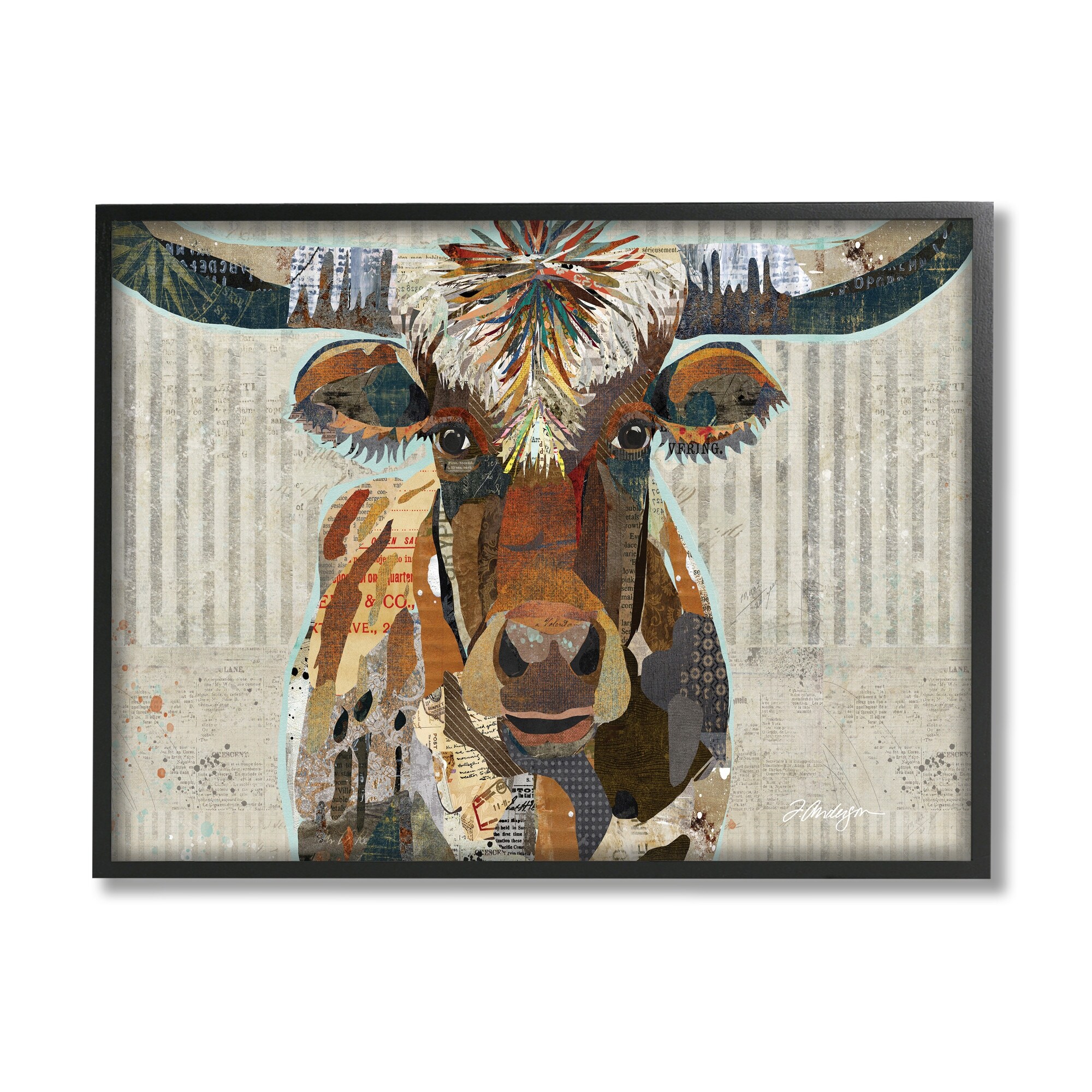Stupell Industries Farm Cattle Striped Pattern Collage Framed Giclee Texturized Wall Art, Design By Traci Anderson