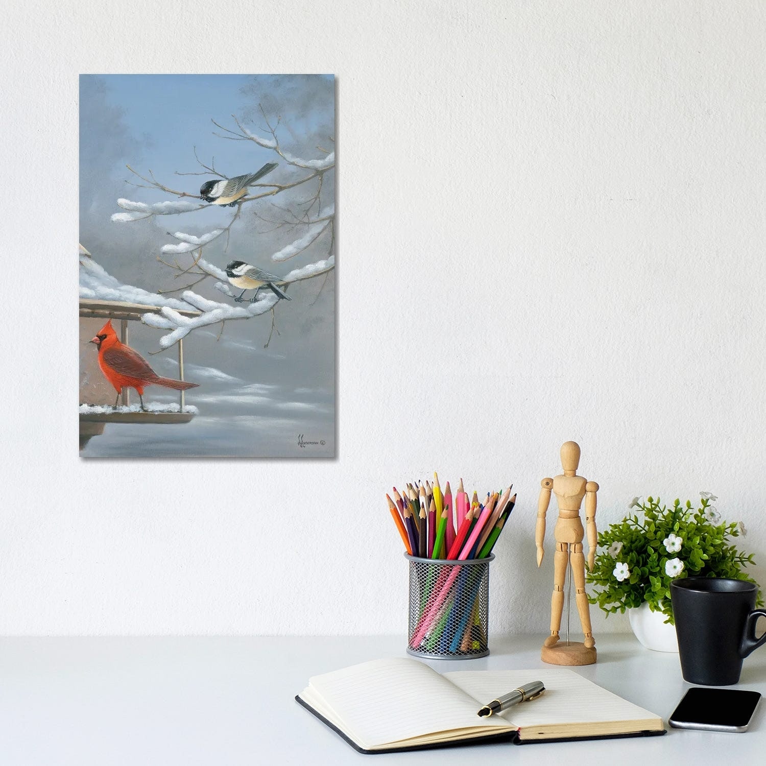iCanvas "The Standoff Cardinal And Chickadee" by Anderson Art Canvas Print