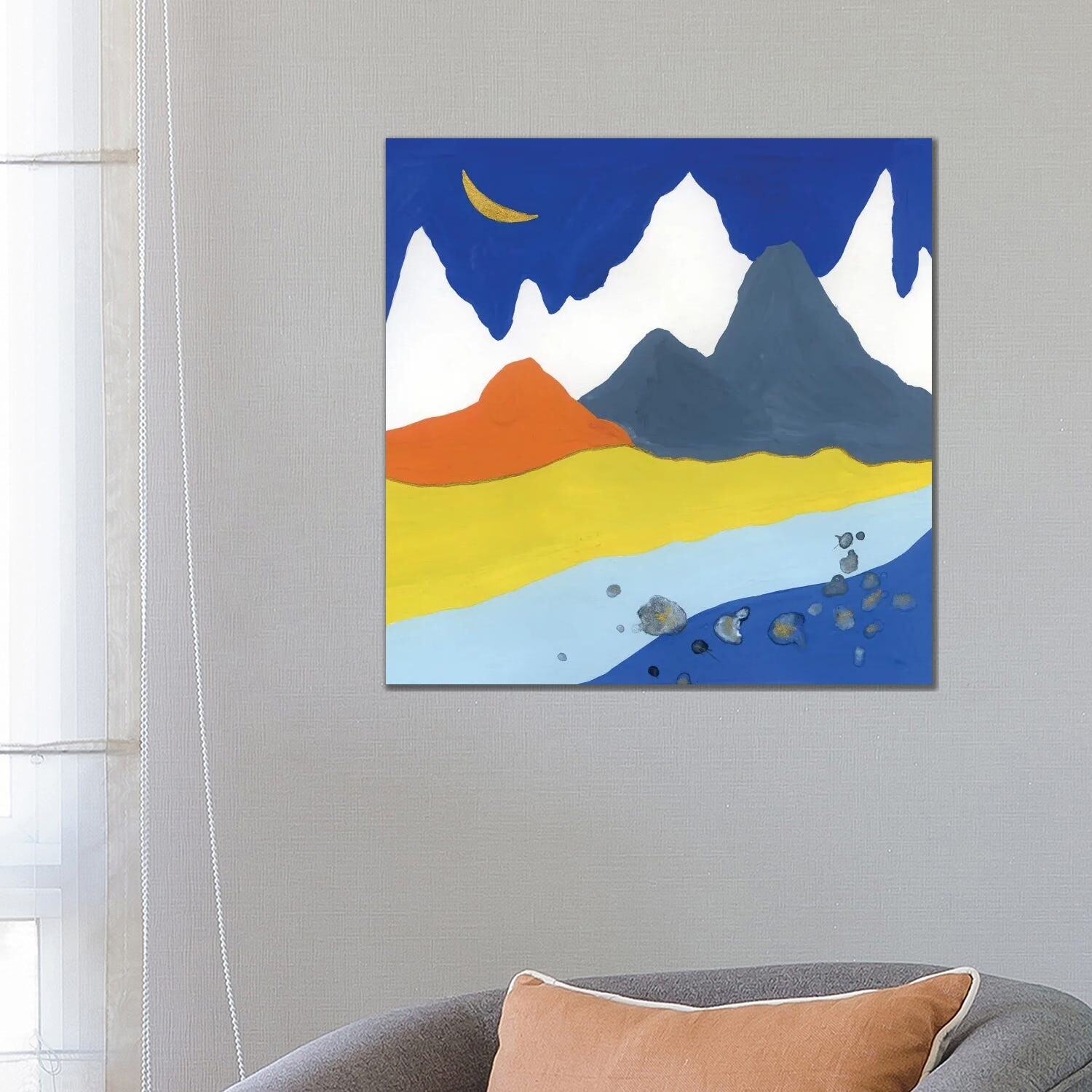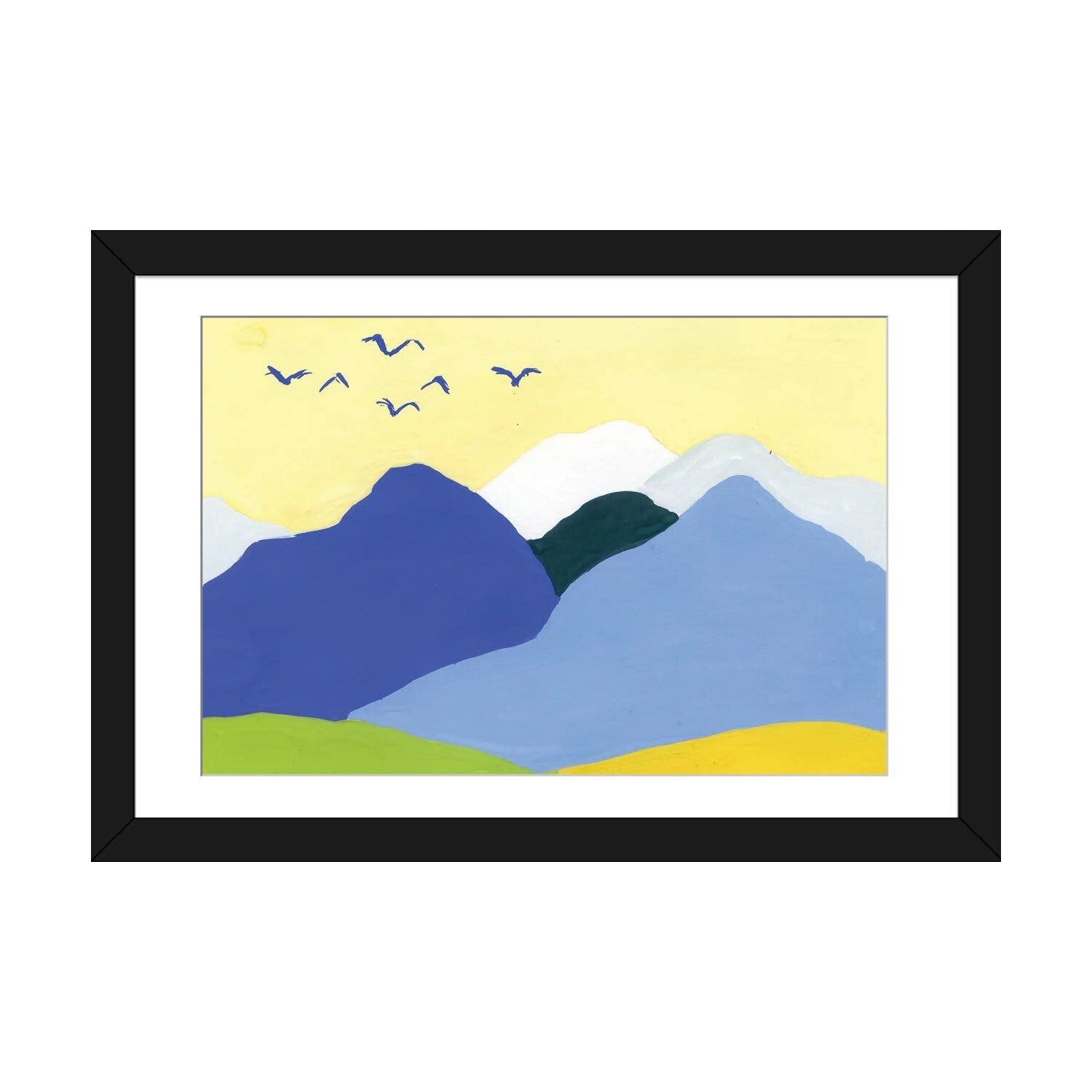 iCanvas "Landscape, Mountains And Birds in Blue And Yellow" by Andrea Kosar