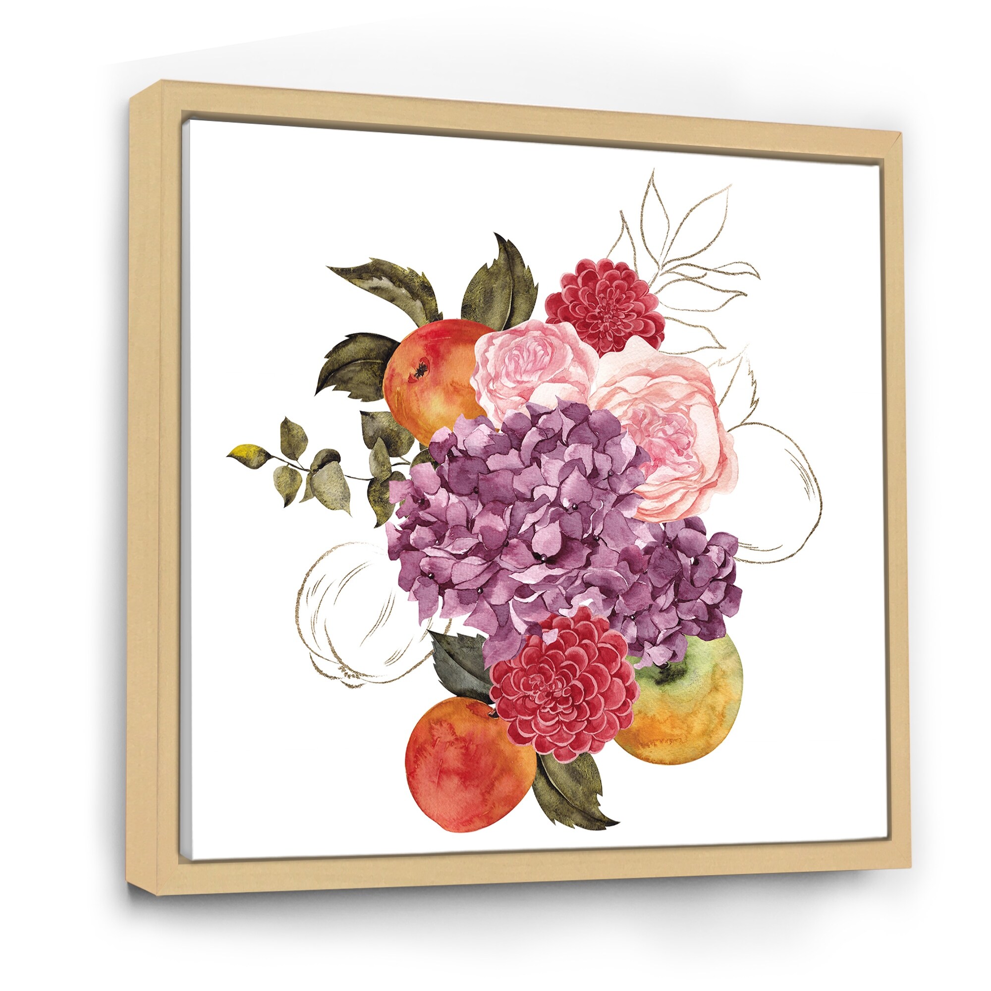 Designart "Fall Flower Bouquet, Apple Berries And Leaves VII" Traditional Framed Canvas Wall Art Print