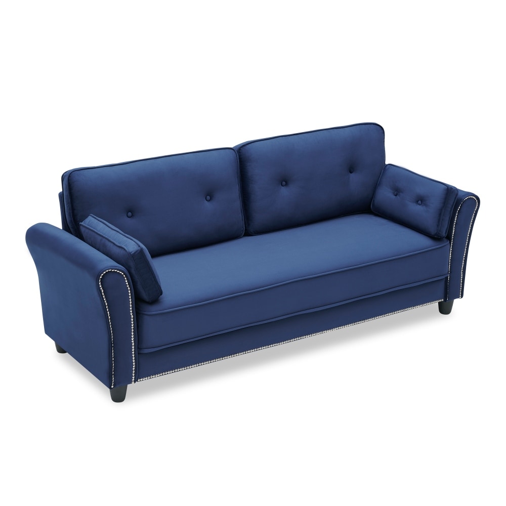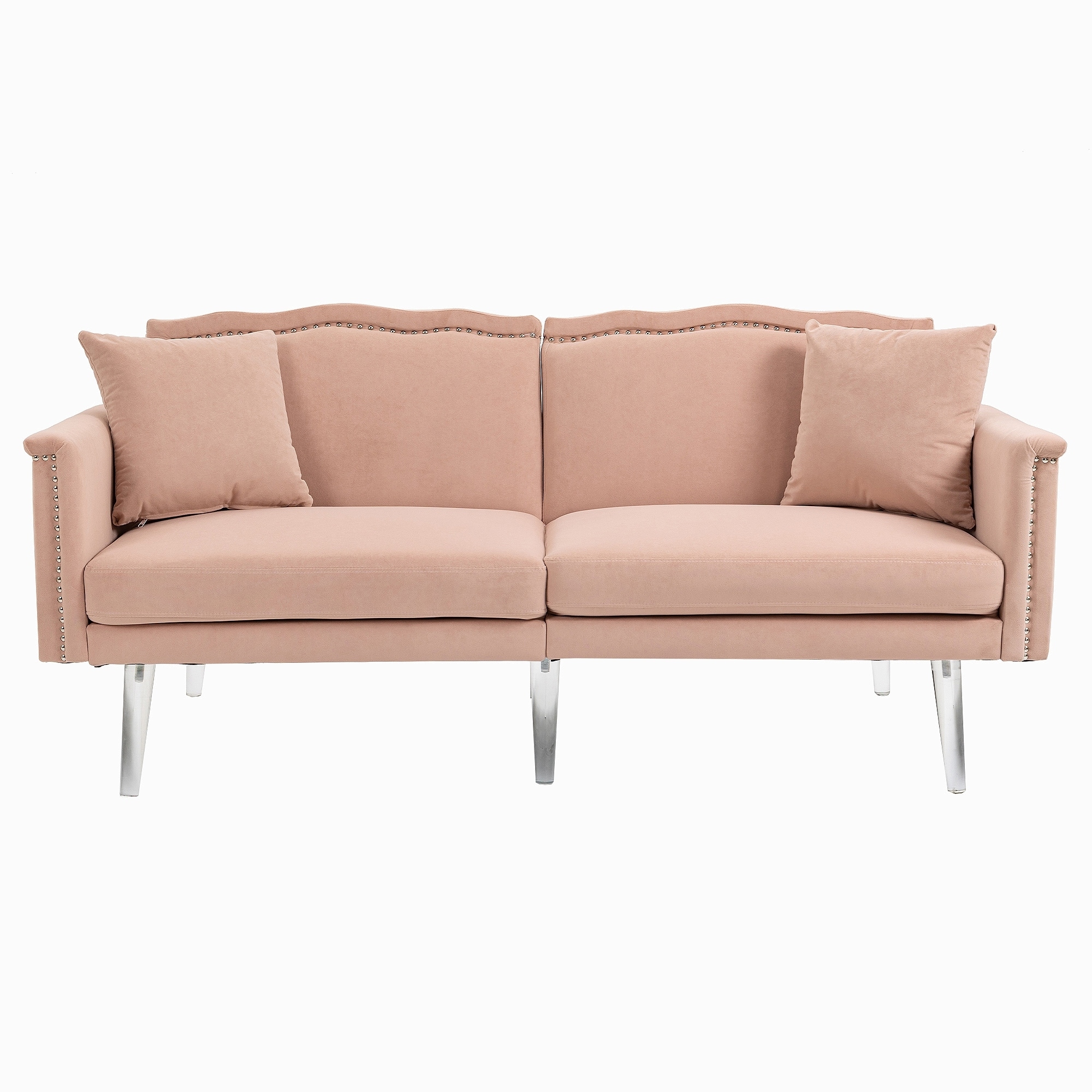 Modern Velvet Sofa Couch Bed with Armrests and 2 Pillows