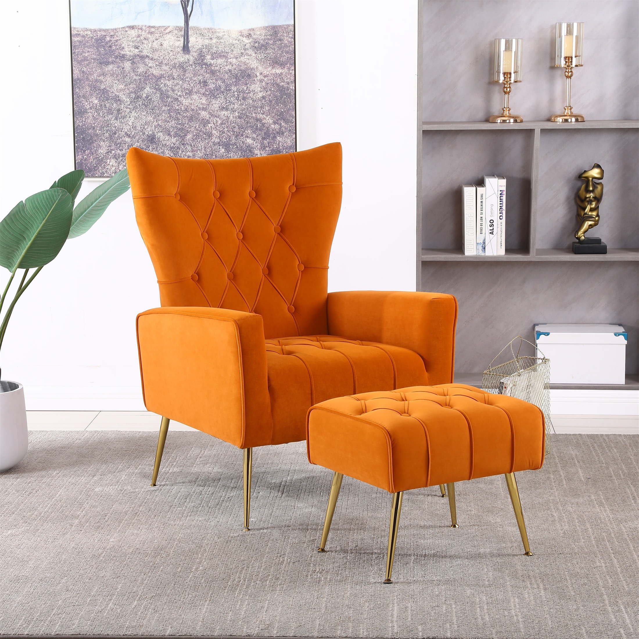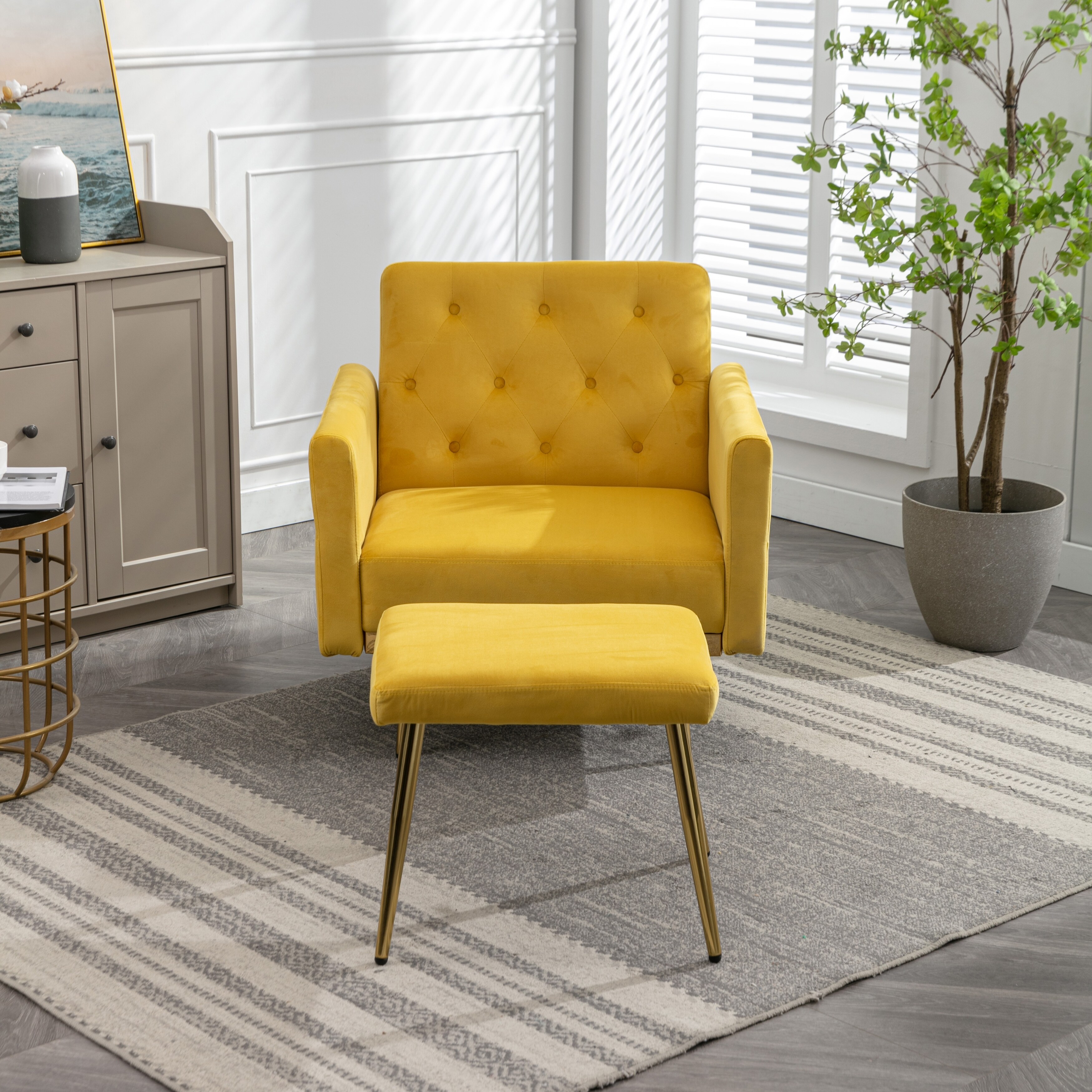 Velvet Accent Chair with Adjustable Armrests and Backrest, Button Tufted Lounge Chair with Ottoman