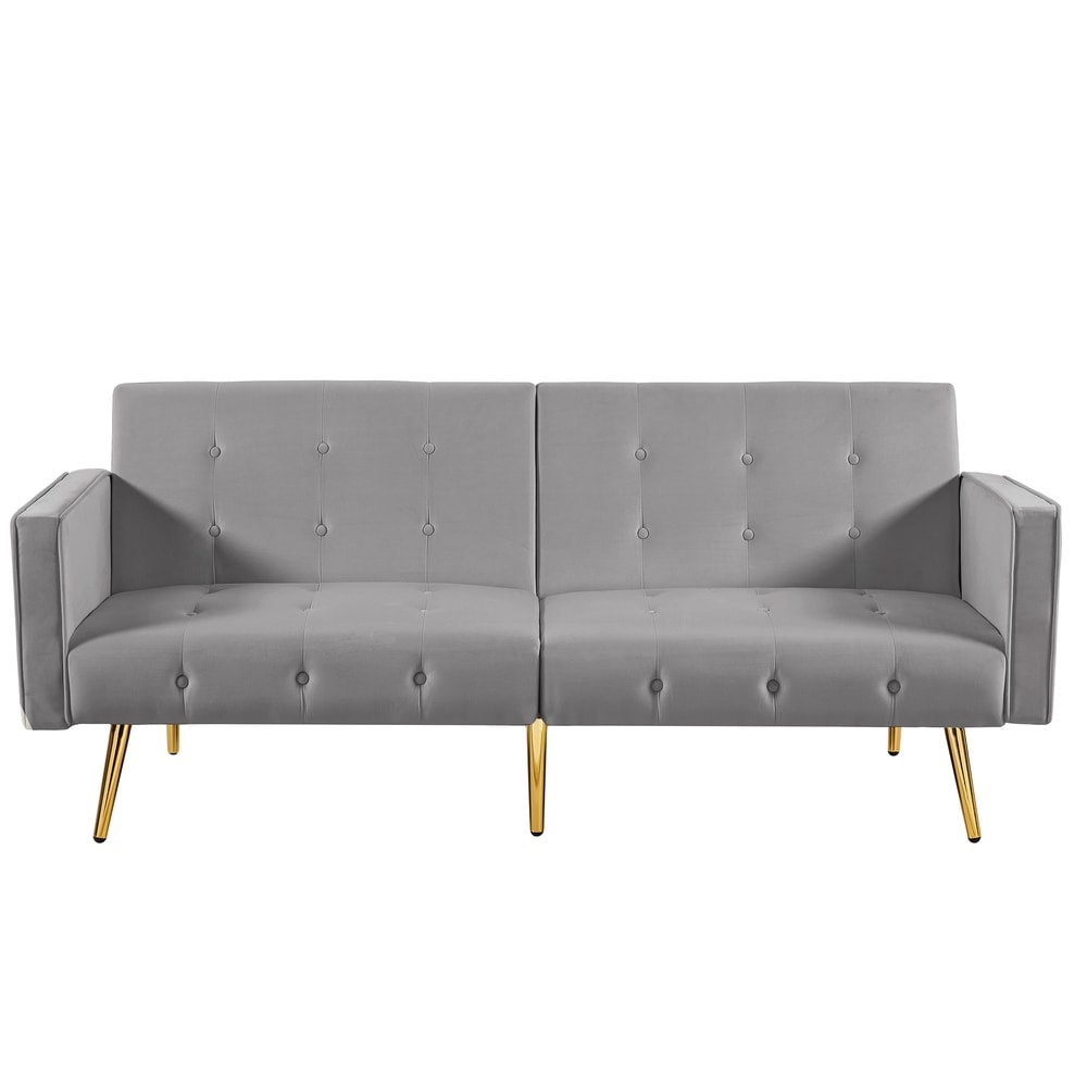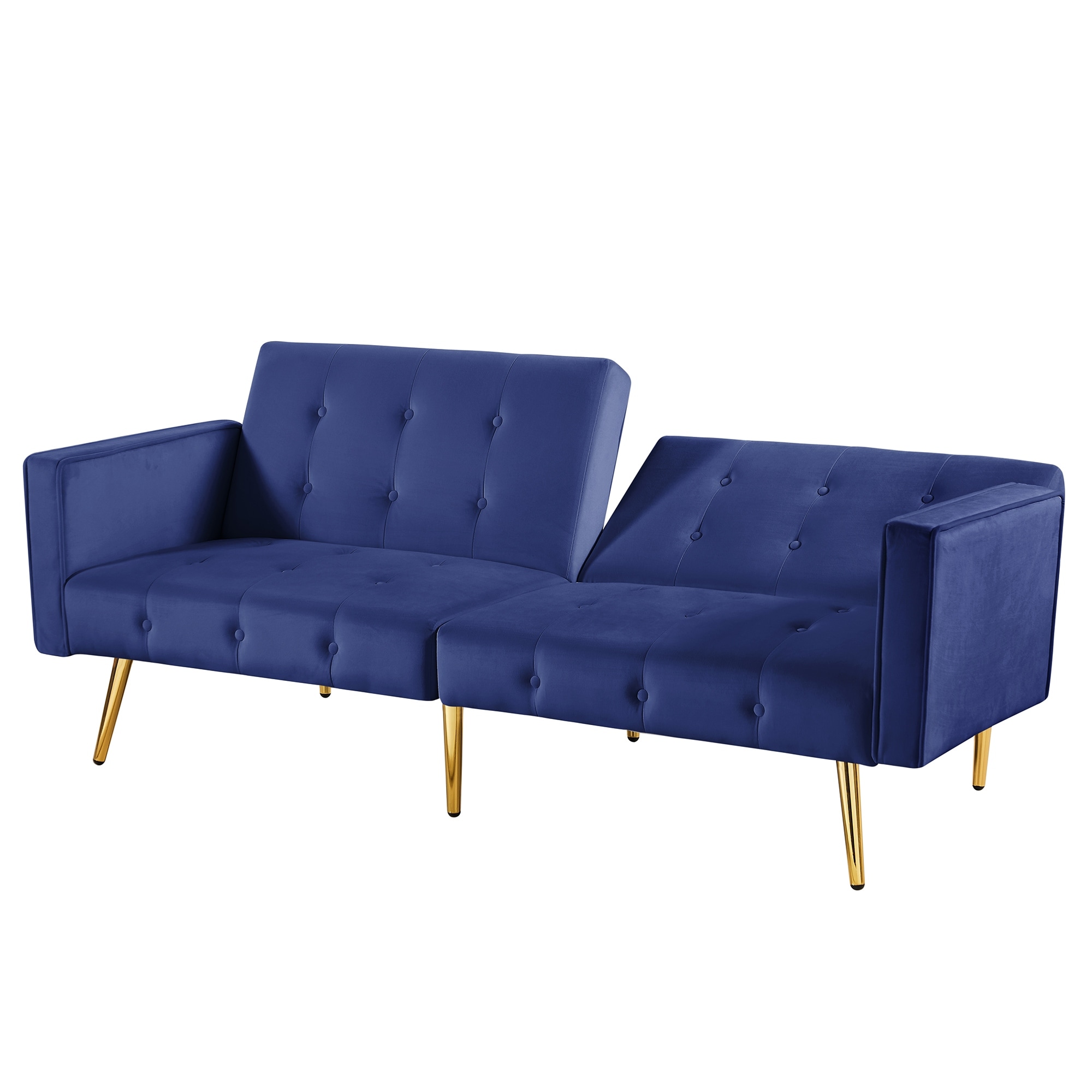 Velvet Tufted Sofa Bed with Gold Metal Legs, Armrest, and Adjustable Backrests
