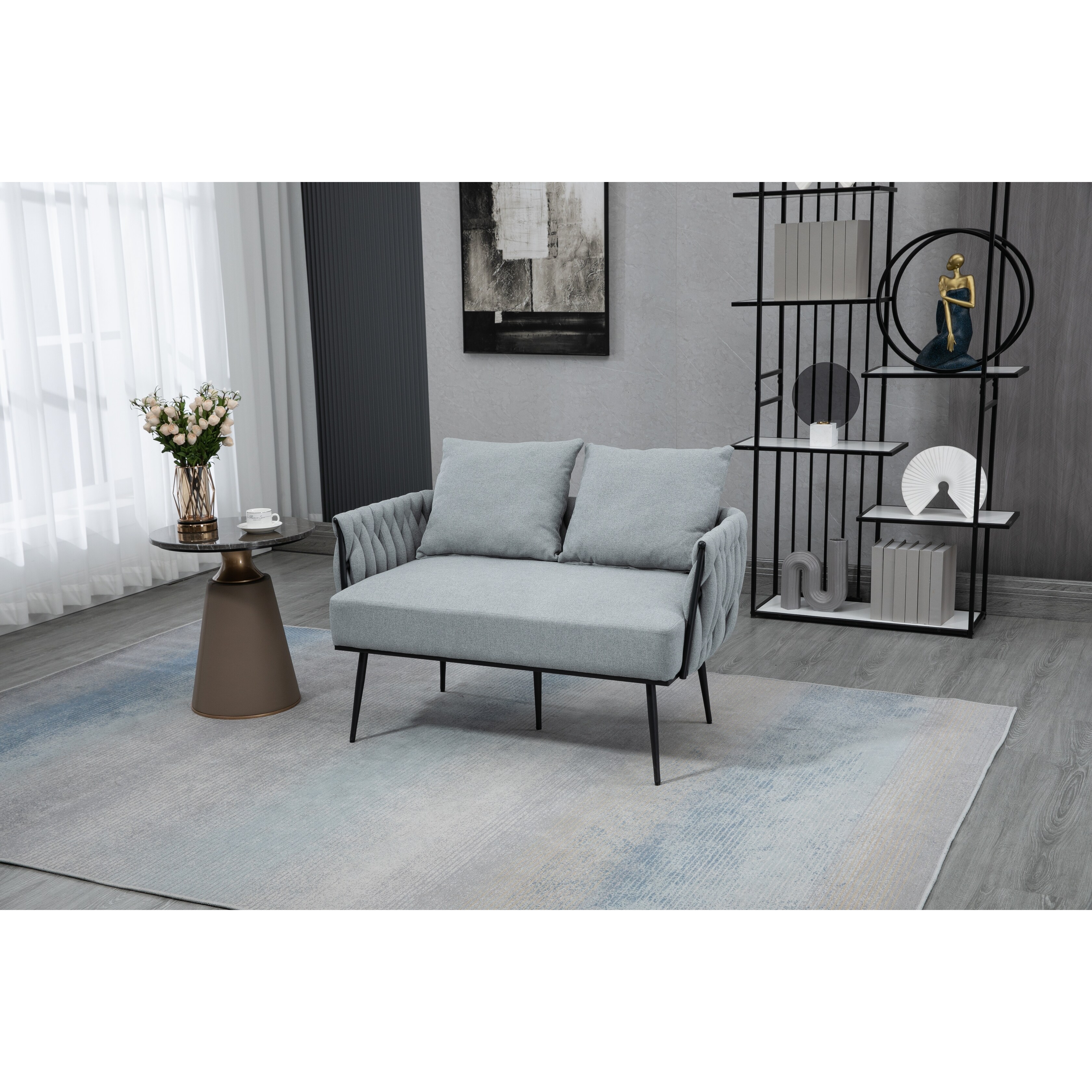 Velvet Sofa with 2 Pillows, Loveseat Armrest