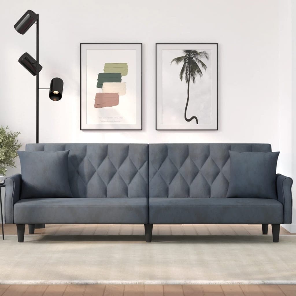 Velvet Sofa Couch Bed with Armrests and 2 Pillows