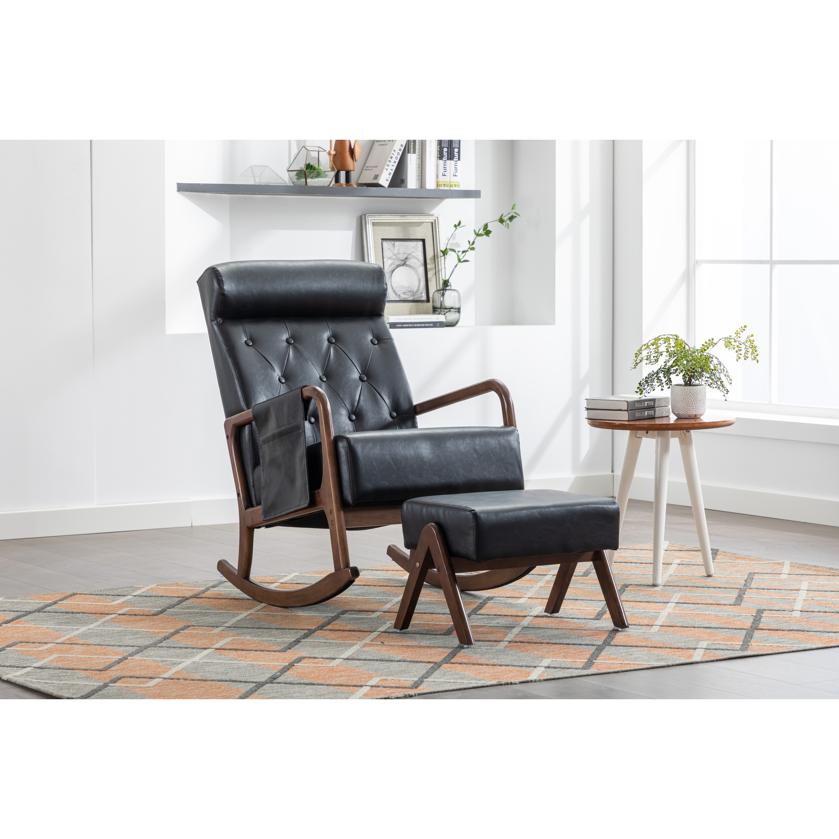 Mid-Century Rocking Chair with Ottoman and Armrest