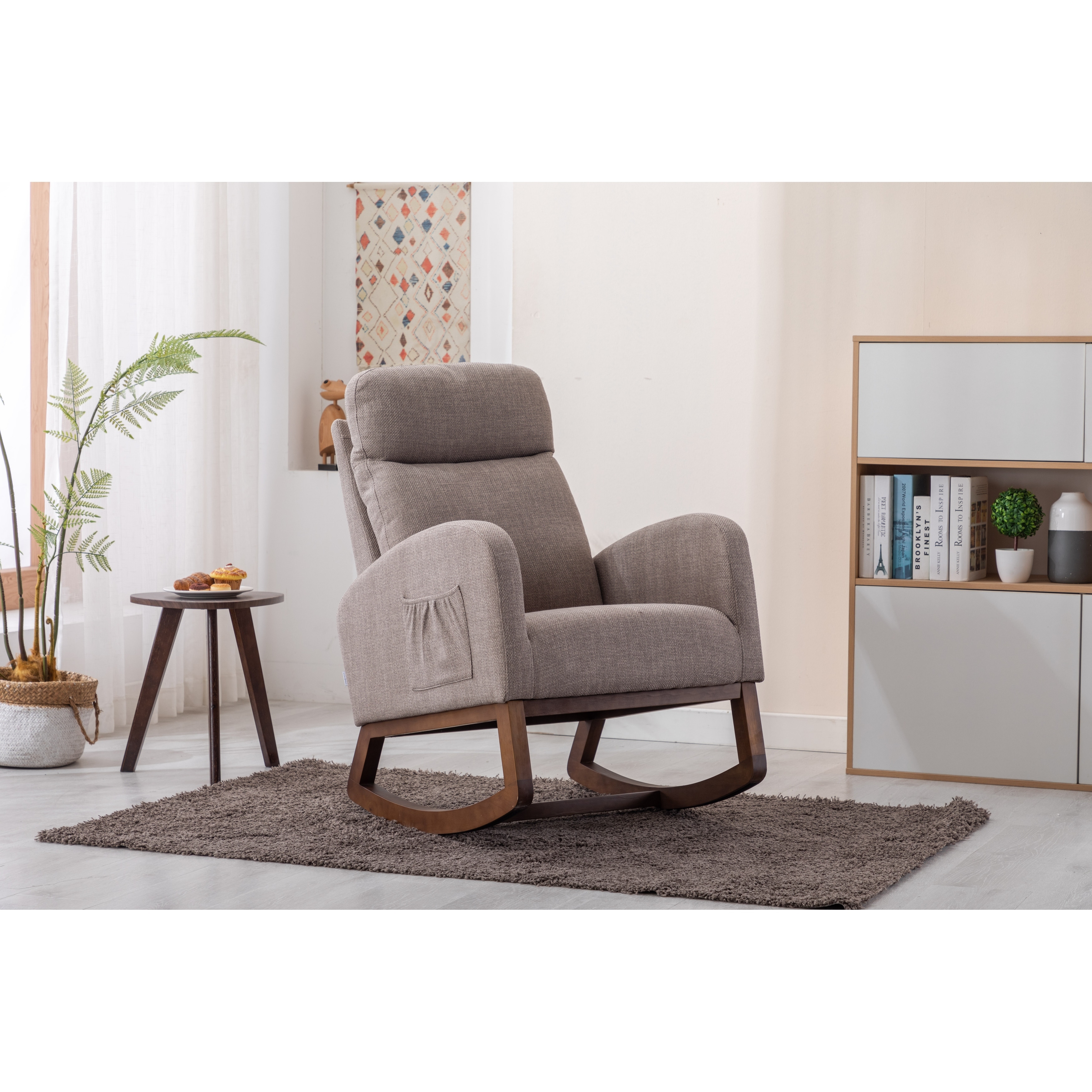 Velvet Fabric Padded Seat Rocking Chair With High Backrest And Armrests