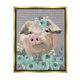 Stupell Industries Fuzzy Pig Surrounded Turquoise Flower Arrangement Pattern Floater Frame, Design by Michele Norman