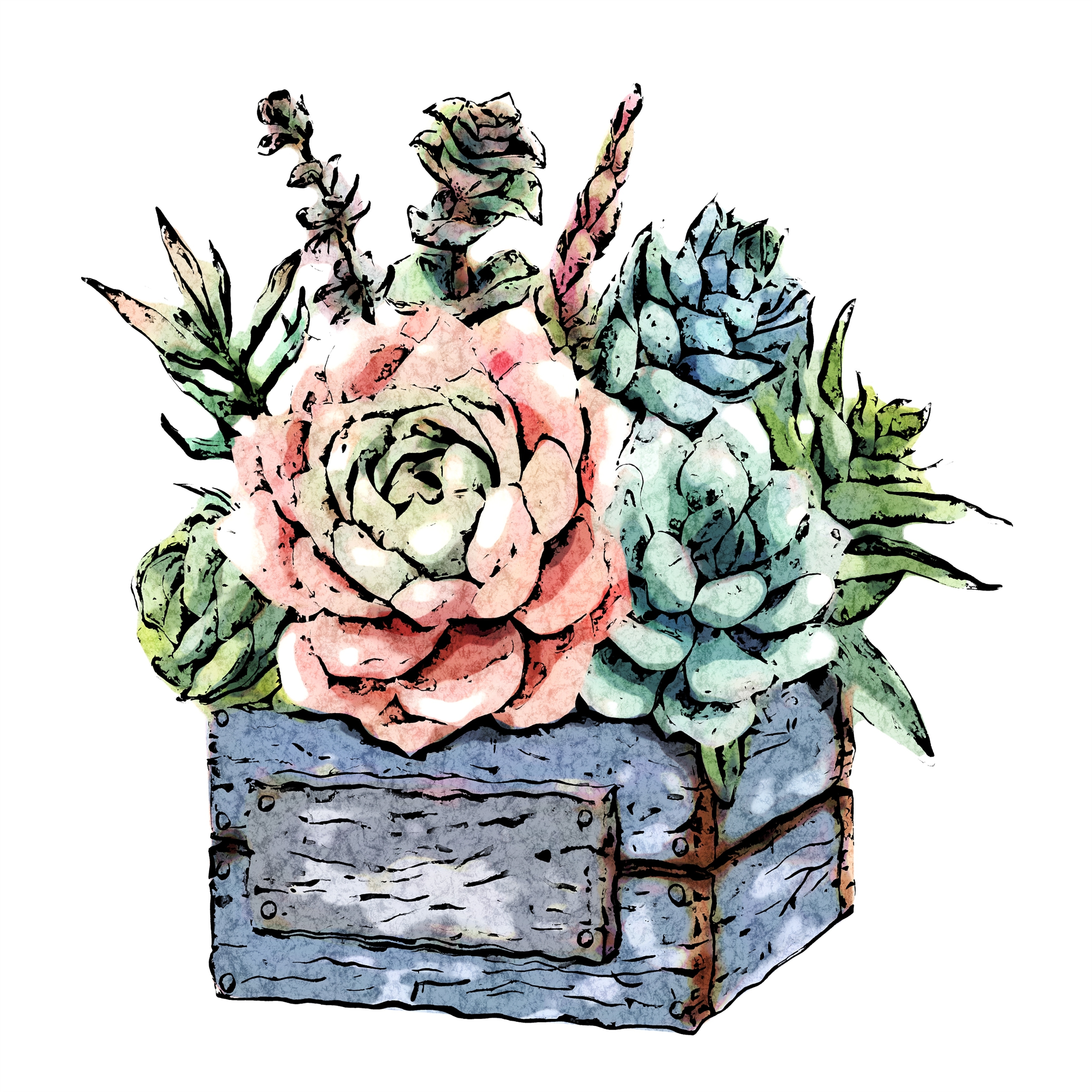 Fine Art Studio "Succulent Bouquet 289" by R Bolokofsky Gallery Wrap Canvas