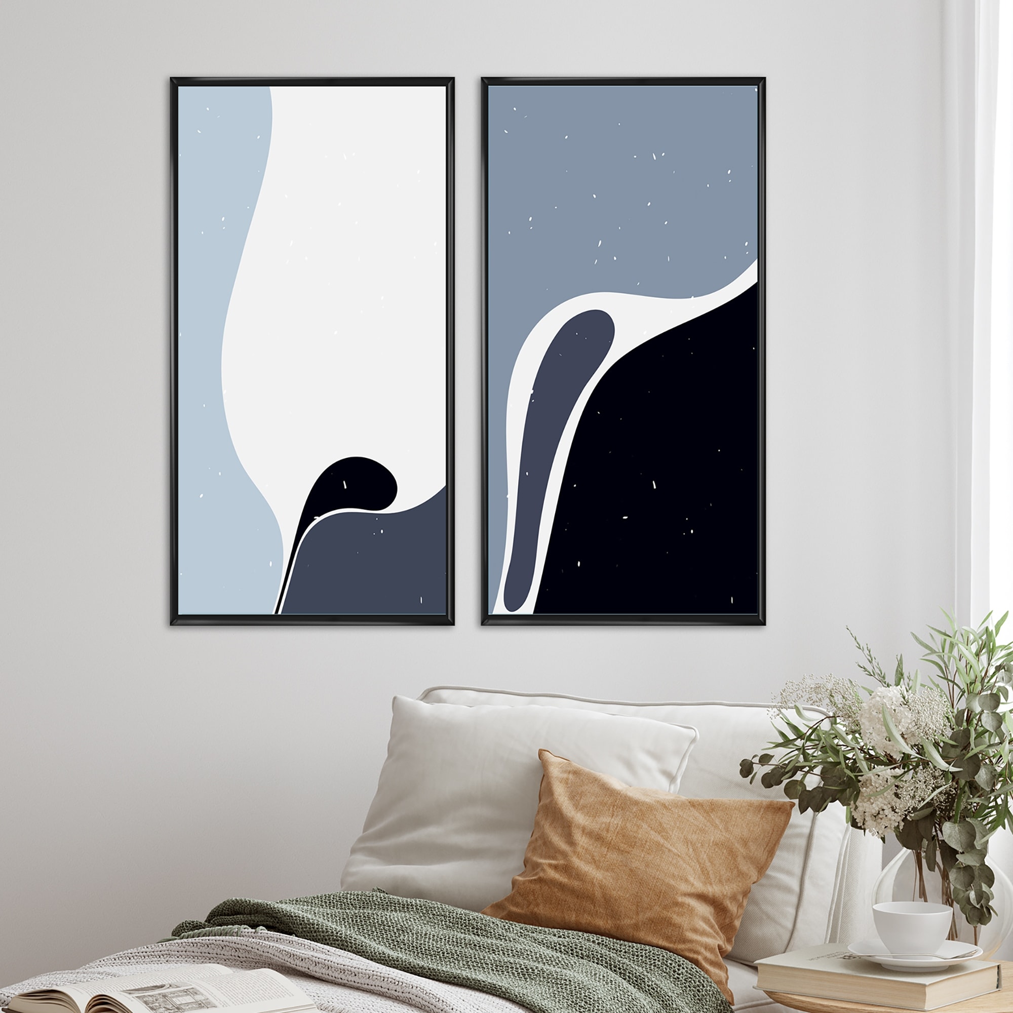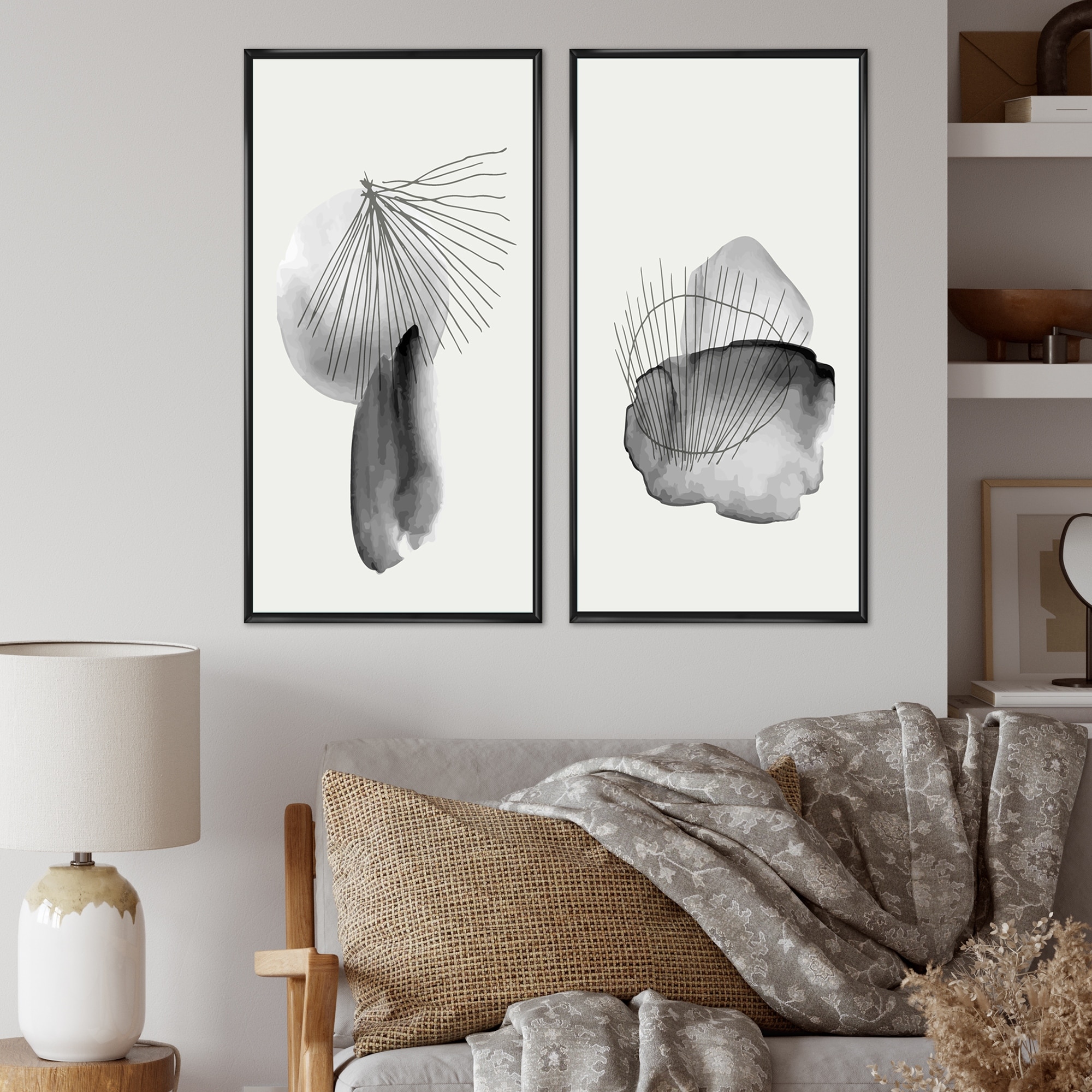 Designart "Minimalistic Foliage With Organic Shapes I" Geometric Framed Art Set of 2 Pieces
