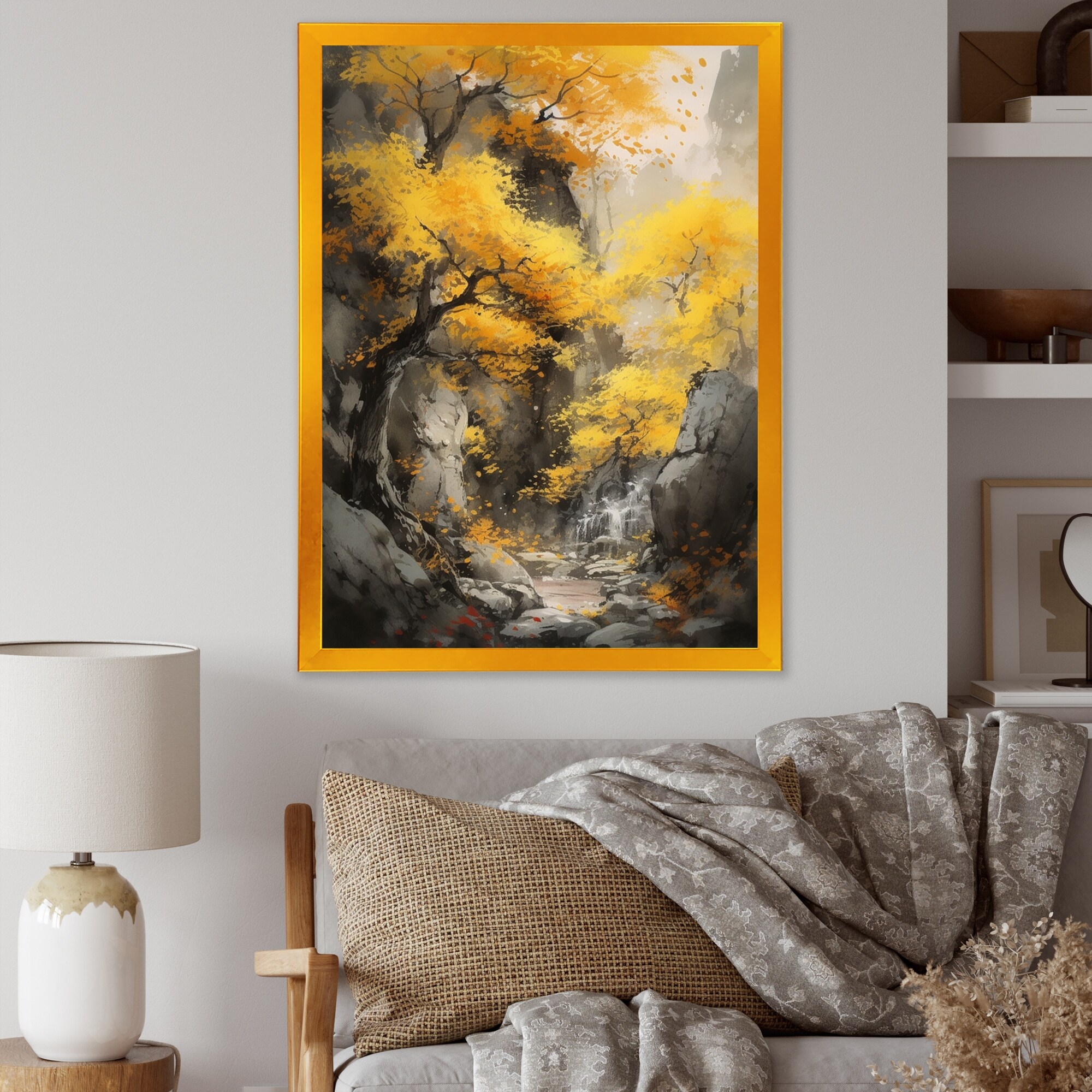 Designart "Cascading Japenese Tree" Landscape Forest Framed Canvas Art Print