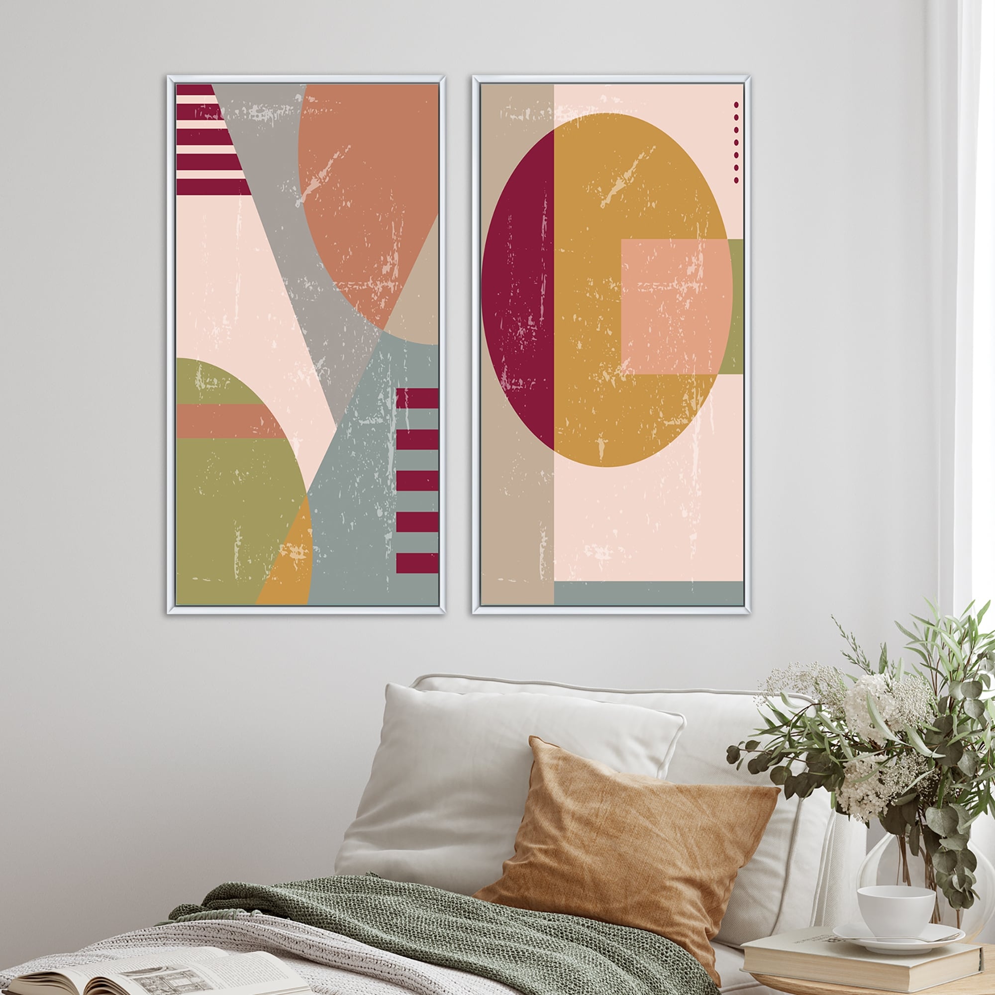 Designart "Vintage Abstract Geometrics in Vintage Colors X" Abstract Framed Art Set of 2 Pieces