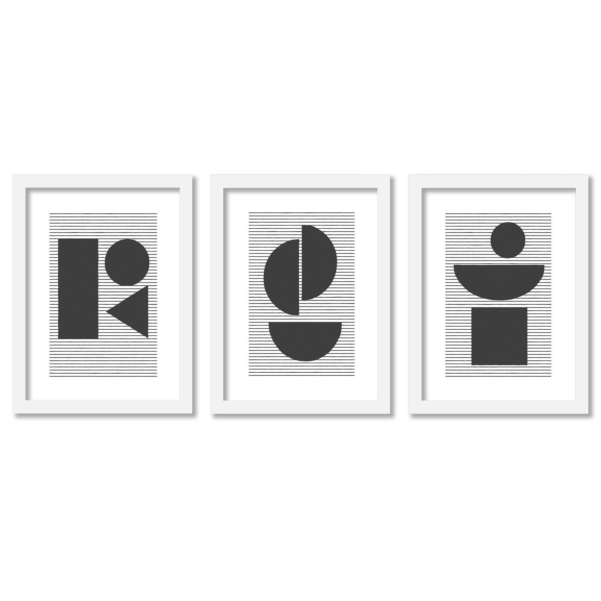 Geometric Hatchwork roseanne Kenny Abstract 2 - 3 Piece Framed Gallery Art Set