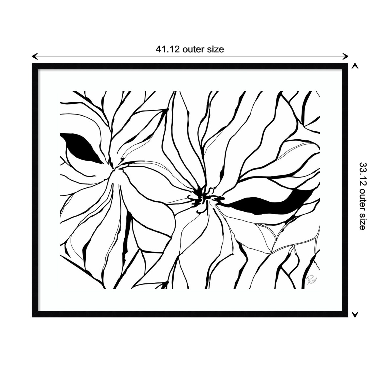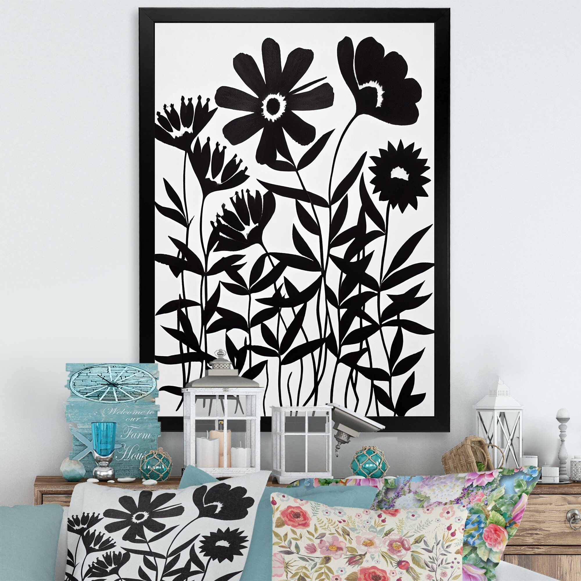 Designart "Black And White Graphic Flowers IV" Floral Framed Art Print