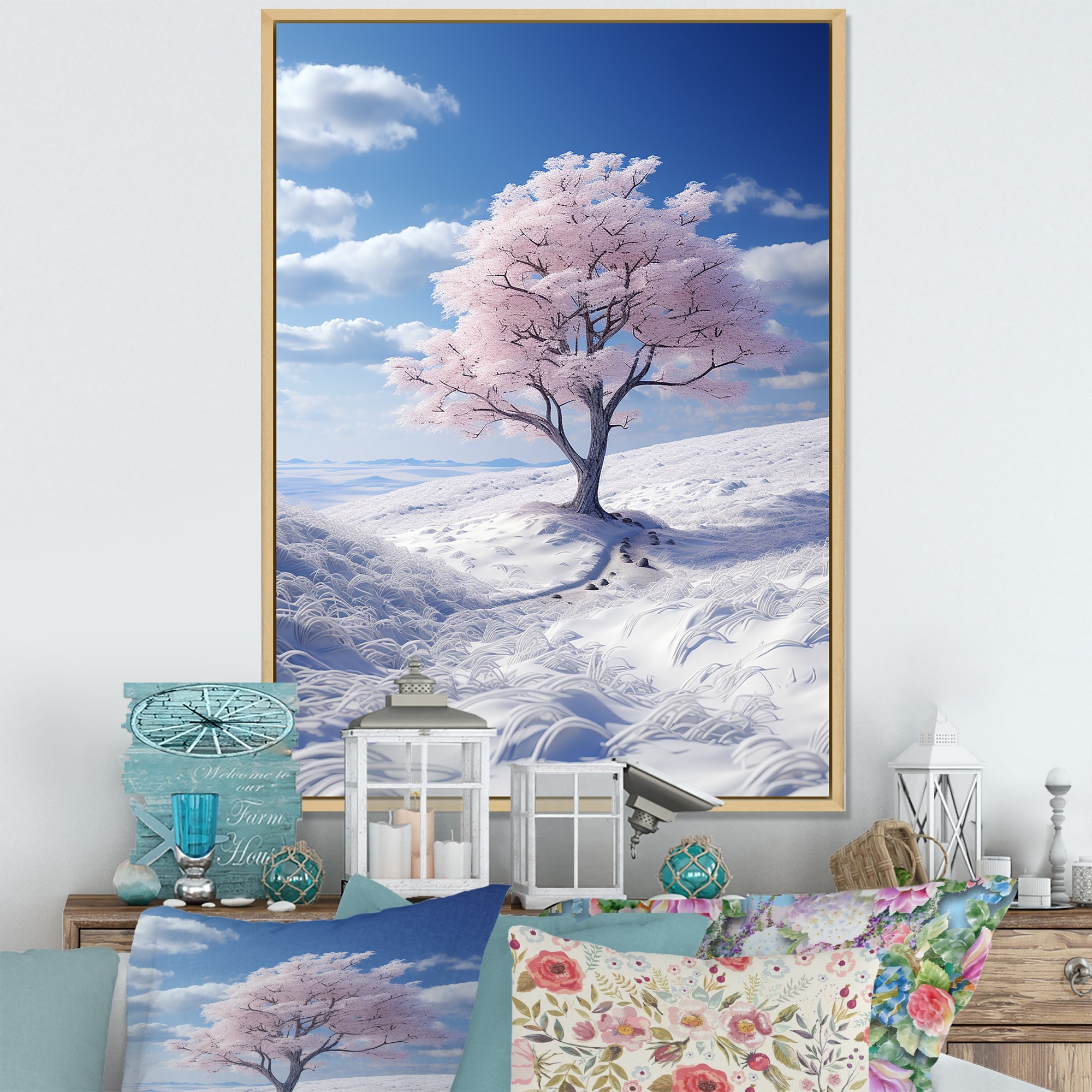 Designart "Snowy Tree Elegance I" Snow Framed Canvas Wall Art