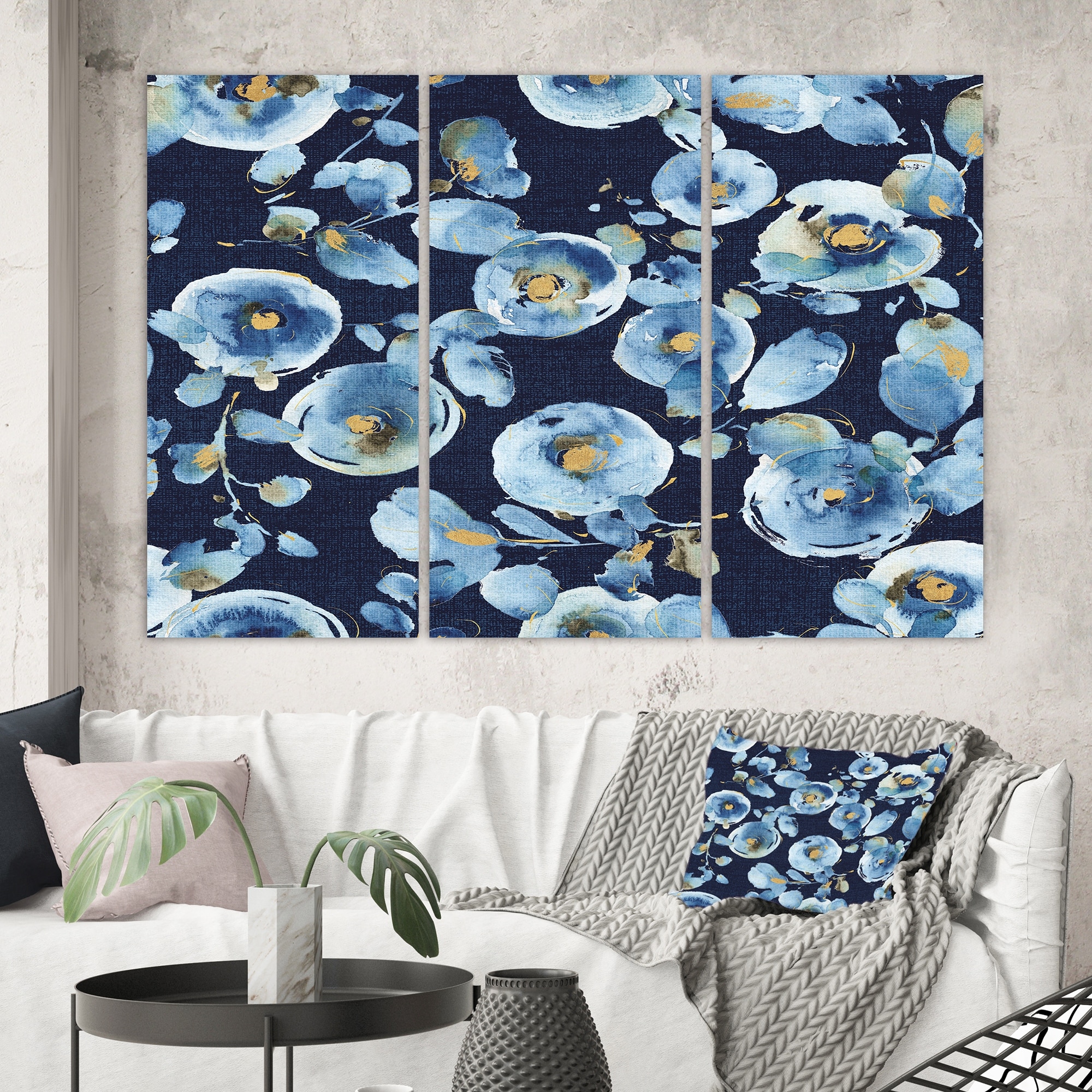 Designart "Indigold metallic Flower Pattern" Floral Canvas Wall Art