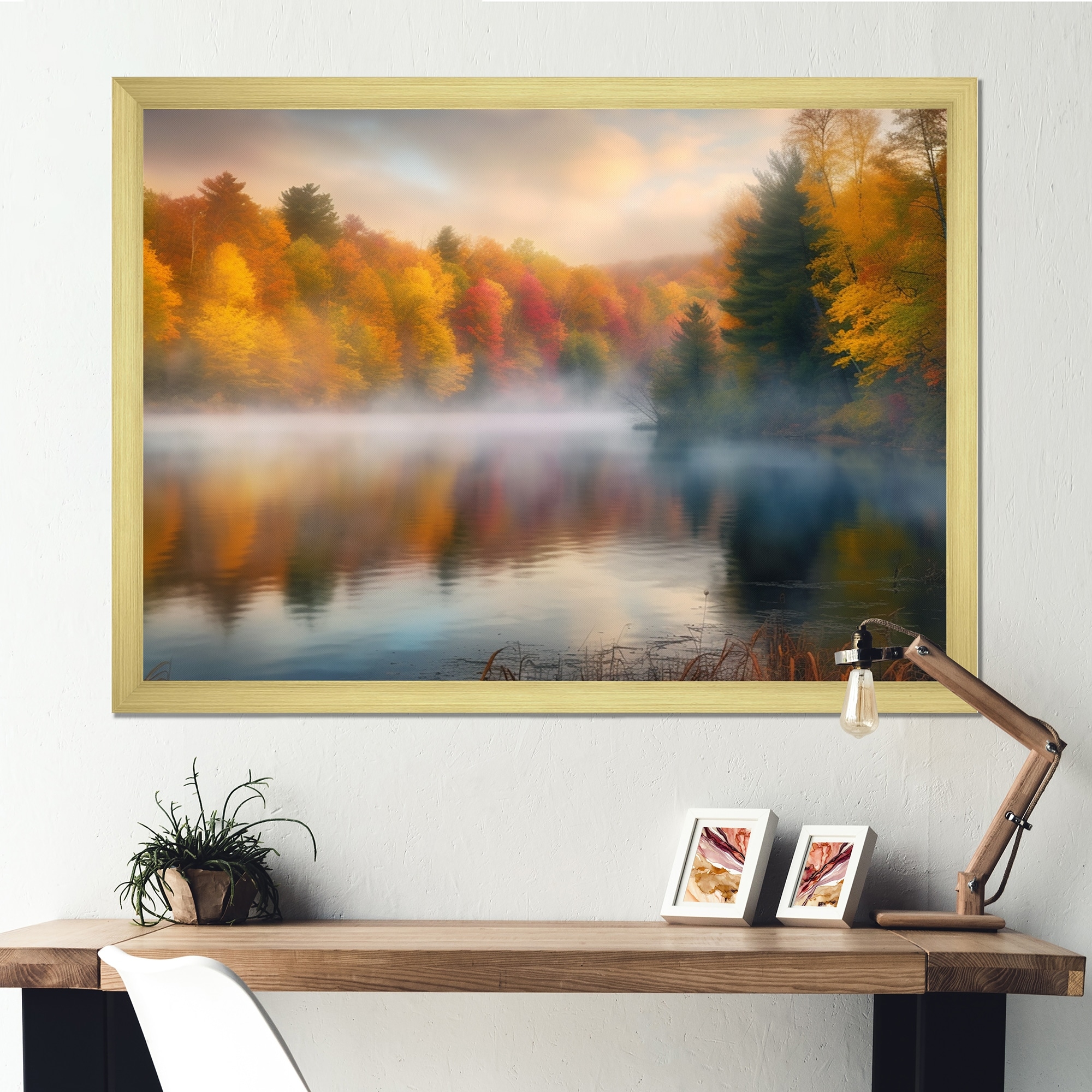 Designart "Misty Lake Ii" Landscape Forest Framed Canvas Wall Art