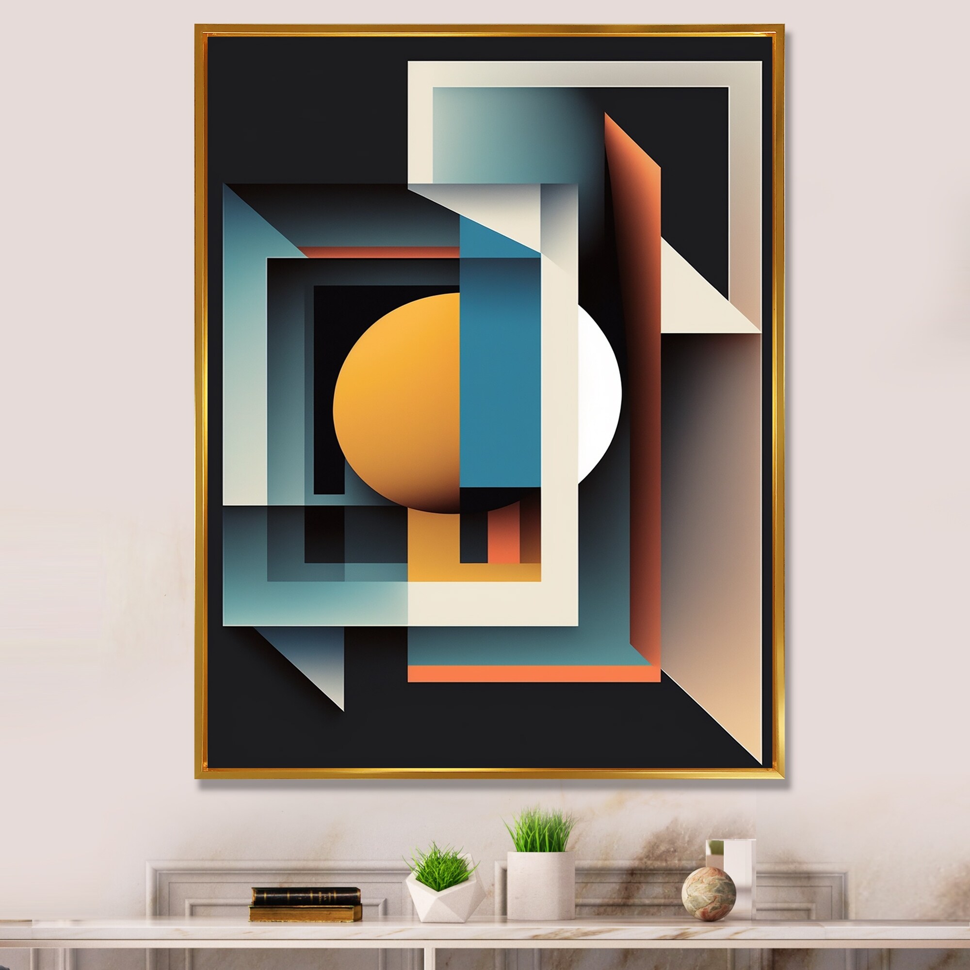Designart "Retro Elementary Geometrics III" Modern Geometric Framed Canvas Wall Art Print