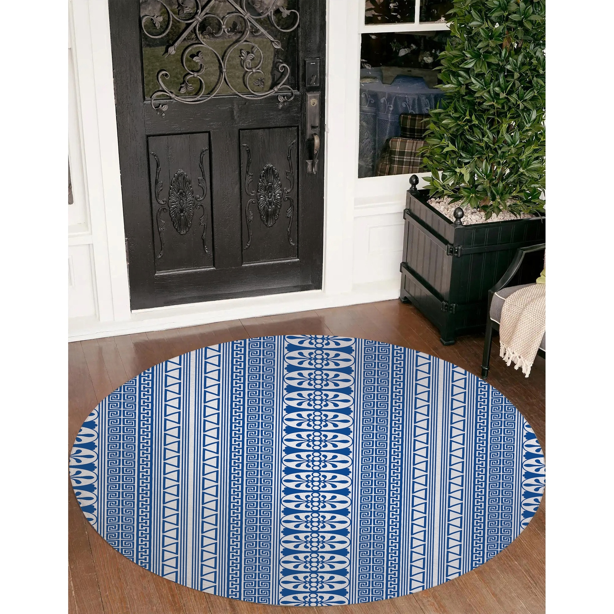 FLORAL GRID BLUE Outdoor Rug By Becky Bailey