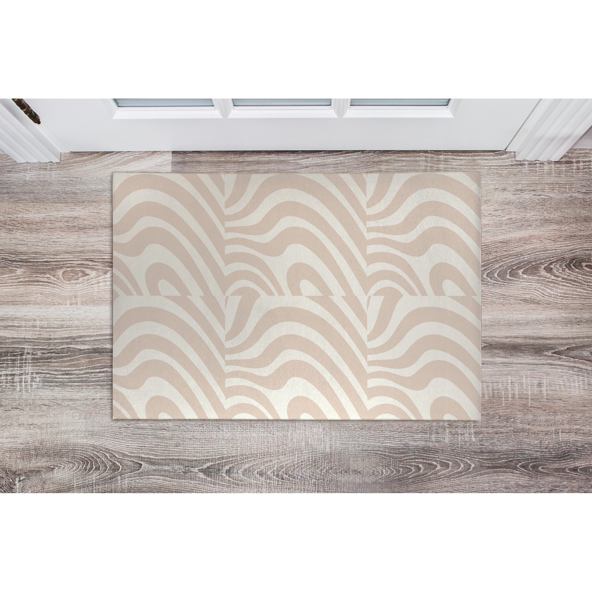 WAVY ABSTRACT PRINT TAN Indoor Floor Mat By Becky Bailey