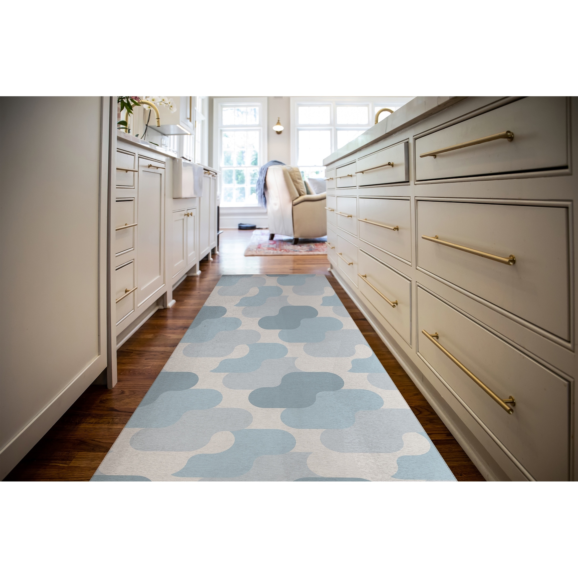 S CURVE LIGHT BLUE Kitchen Mat By Becky Bailey