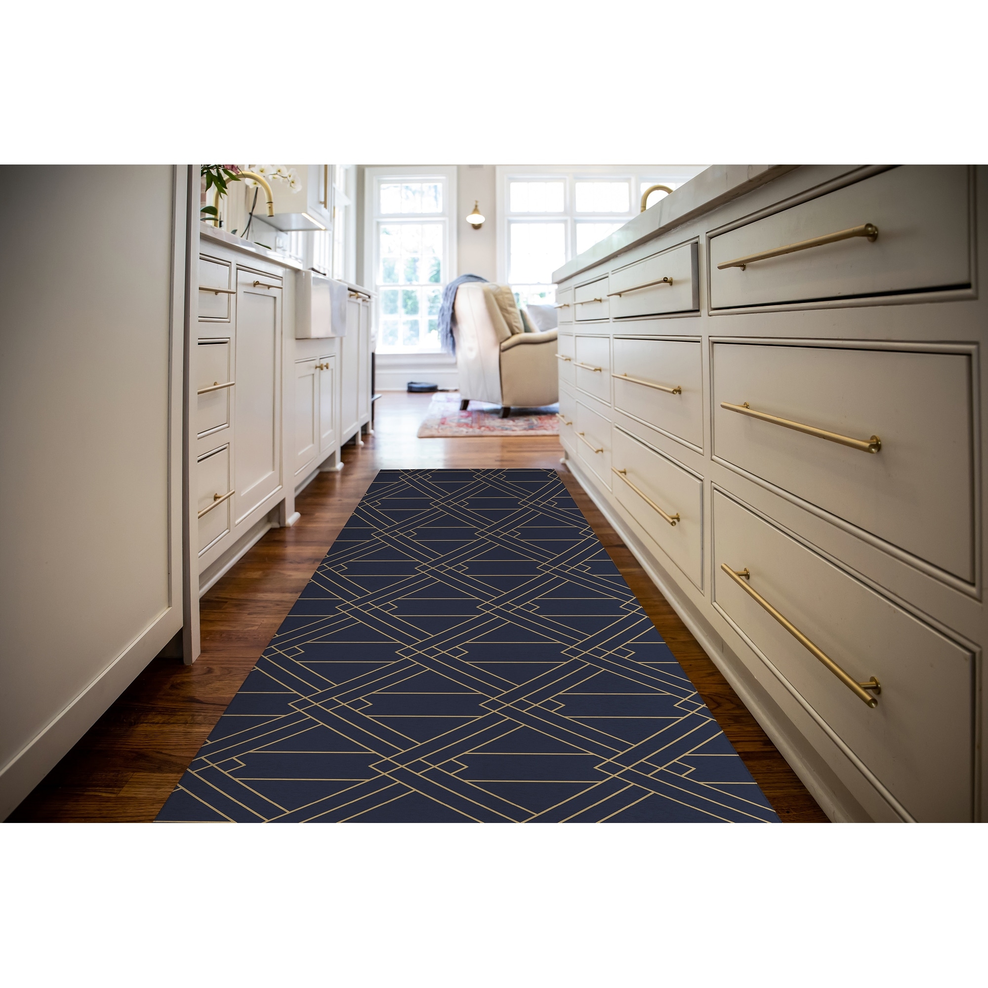 ART DECO TRIANGLES DARK BLUE Kitchen Mat By Becky Bailey