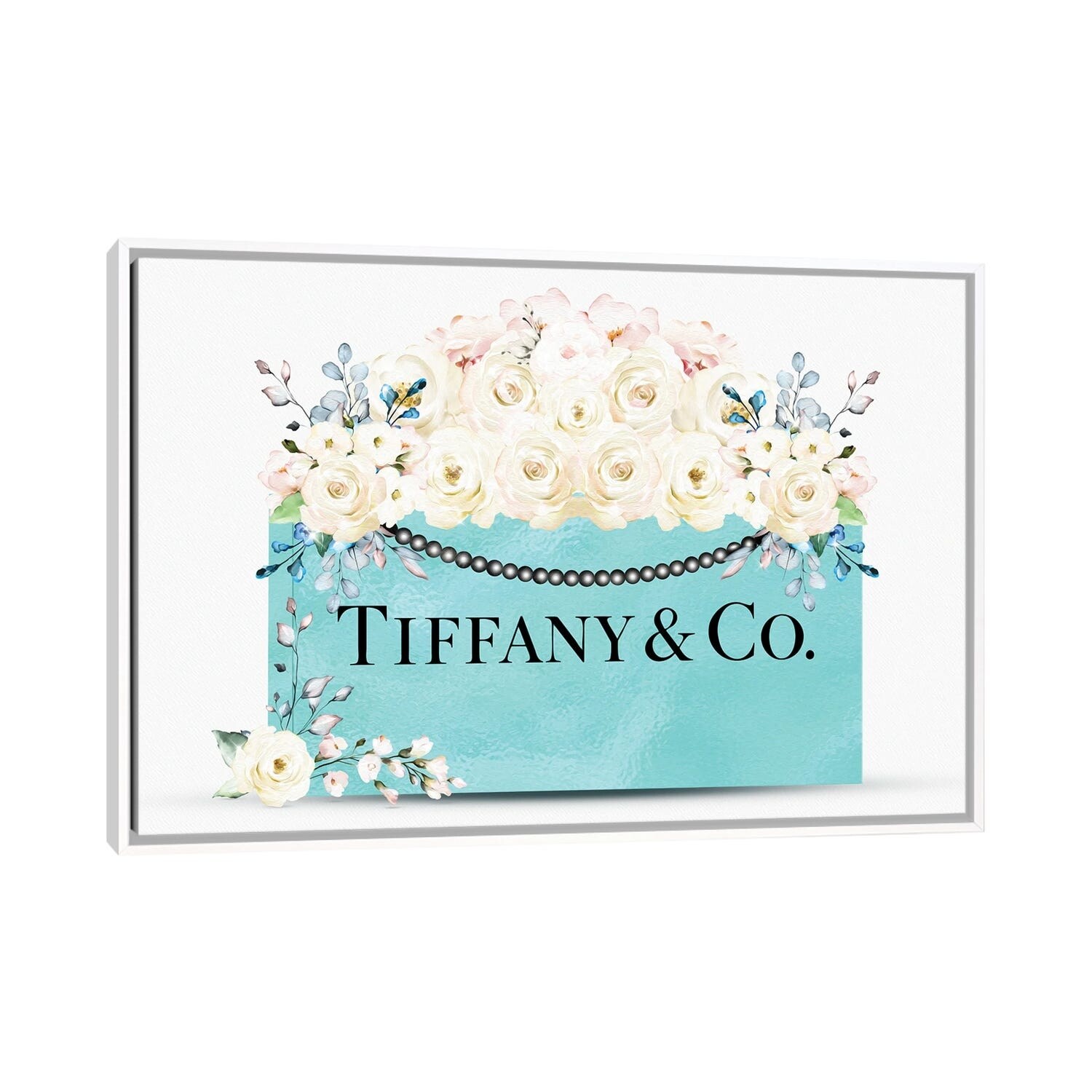 iCanvas "Teal Fashion Shopping Bag With White Pink & Blue Florals" by Pomaikai Barron Framed Canvas Print