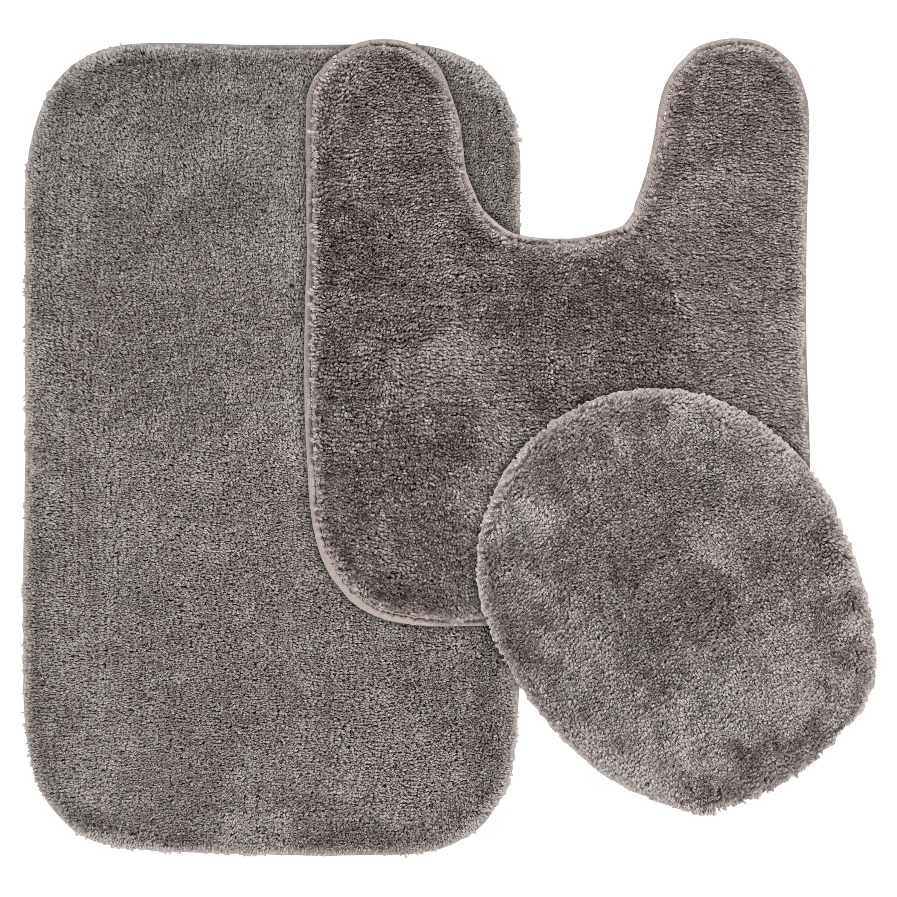 Traditional Plush Platinum Grey Washable Nylon Bathroom Rug