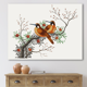 Designart "Two Chinese Birds on A Flowering Tree Branch" Traditional Canvas Wall Art Print