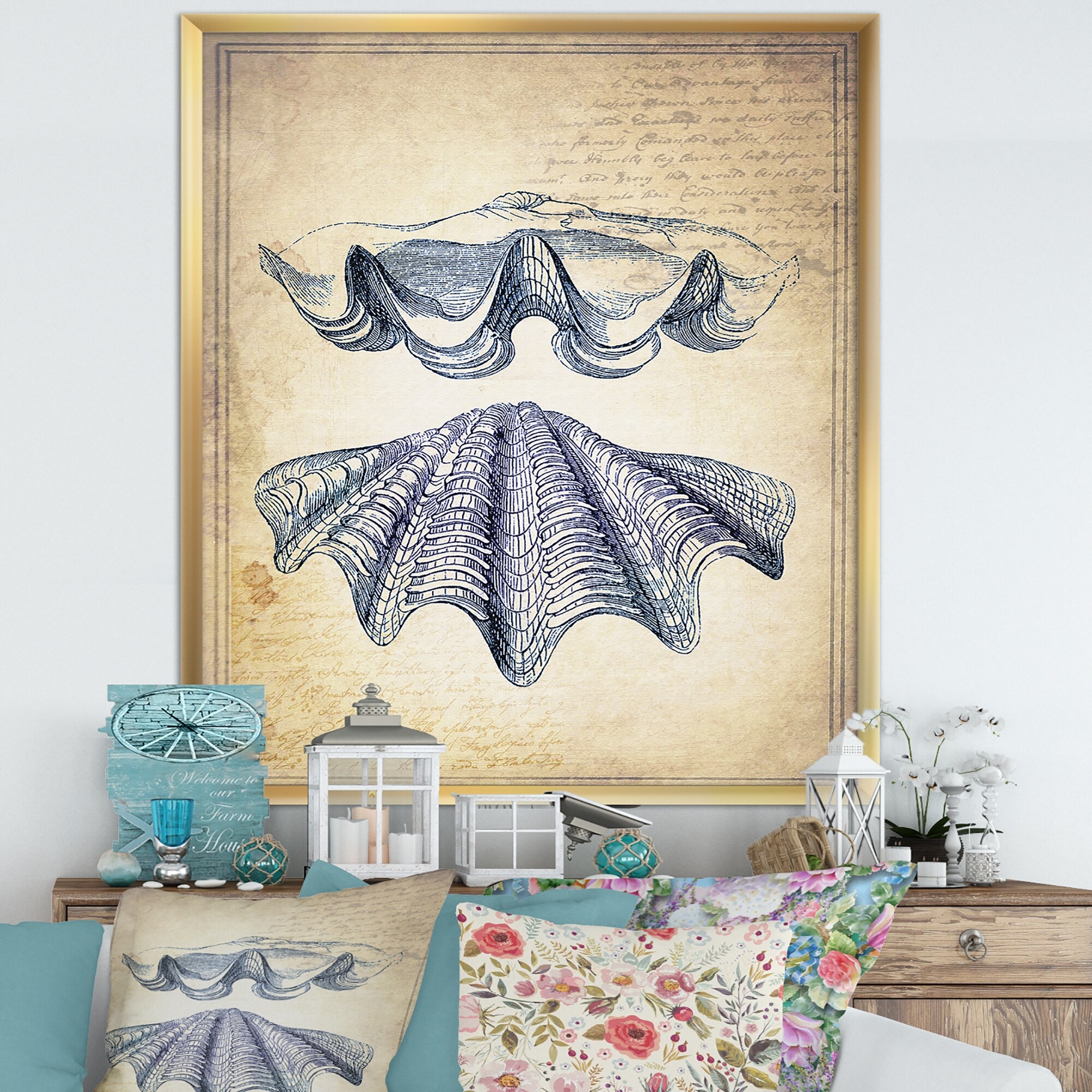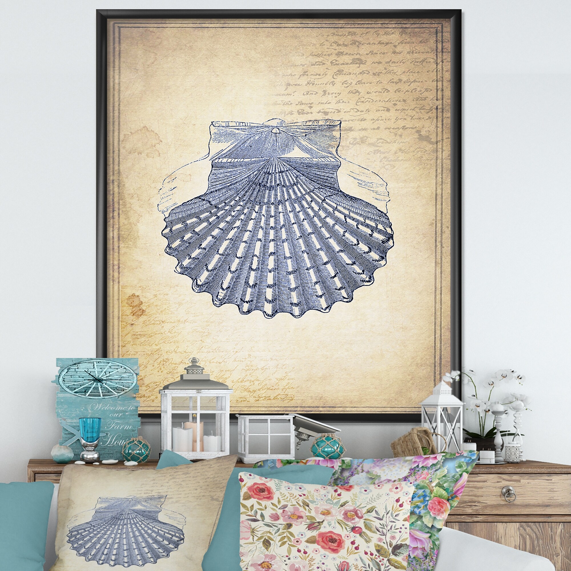 Designart "Seastar and Blue Sea Shell I" Nautical & Coastal Framed Canvas