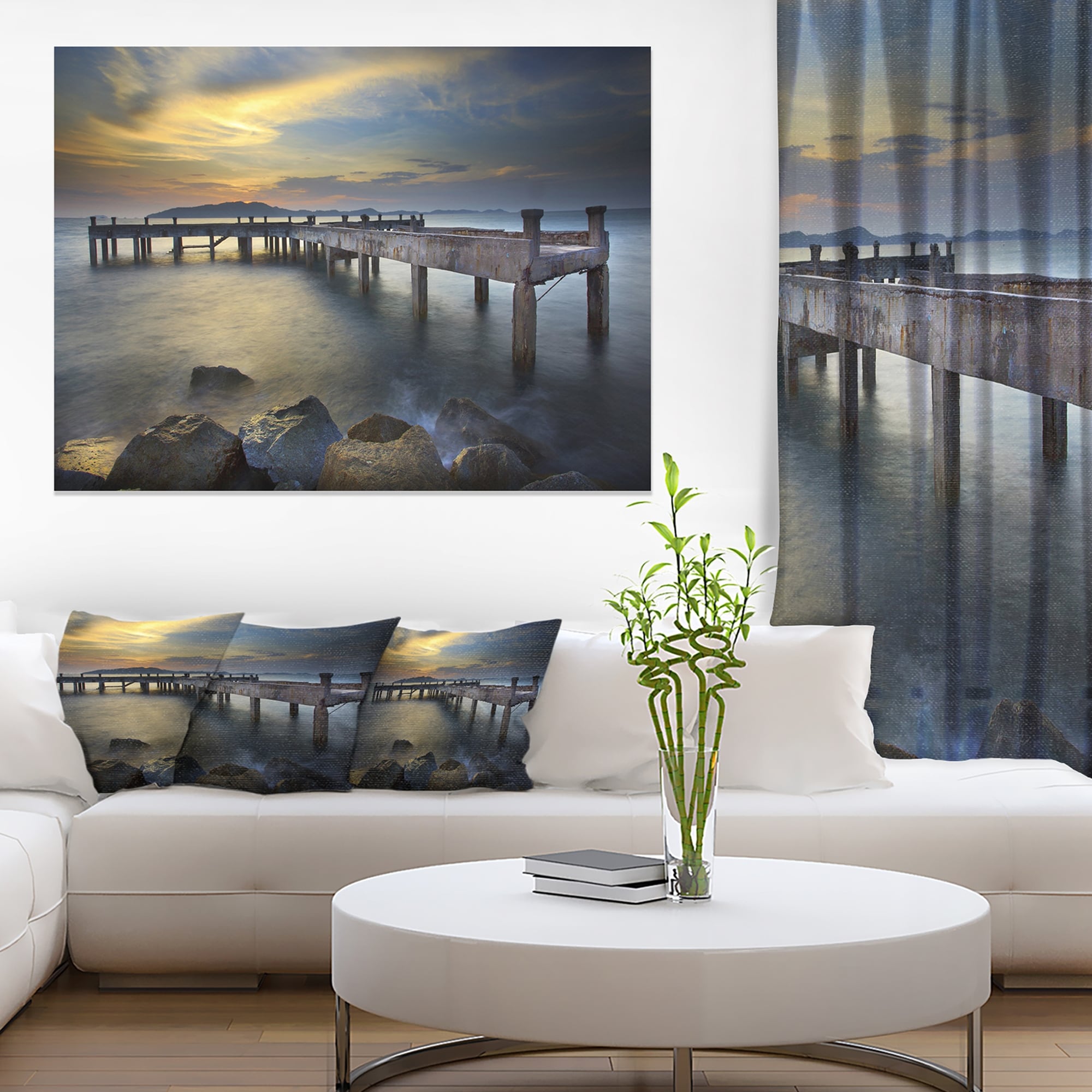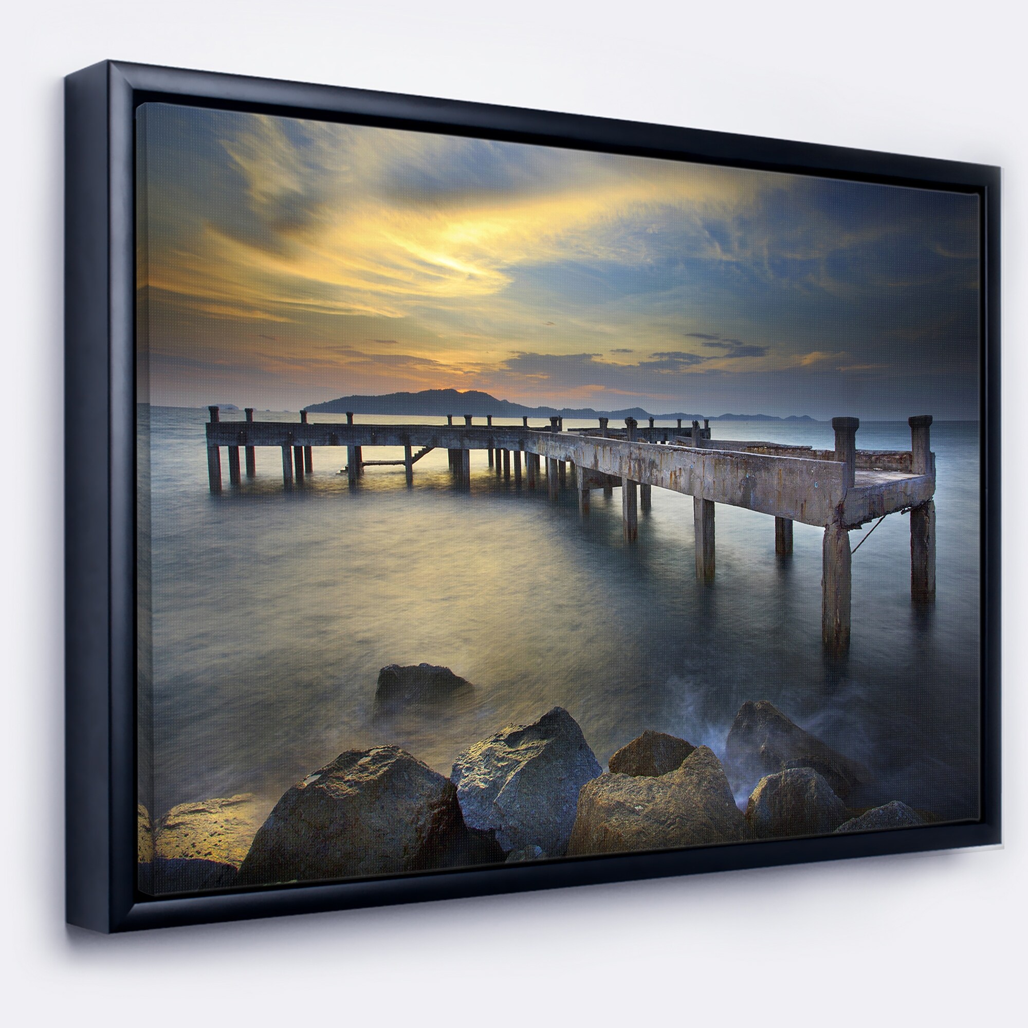 Designart "Abandoned Pier into Blue Sea" Sea Bridge Framed Canvas Art Print